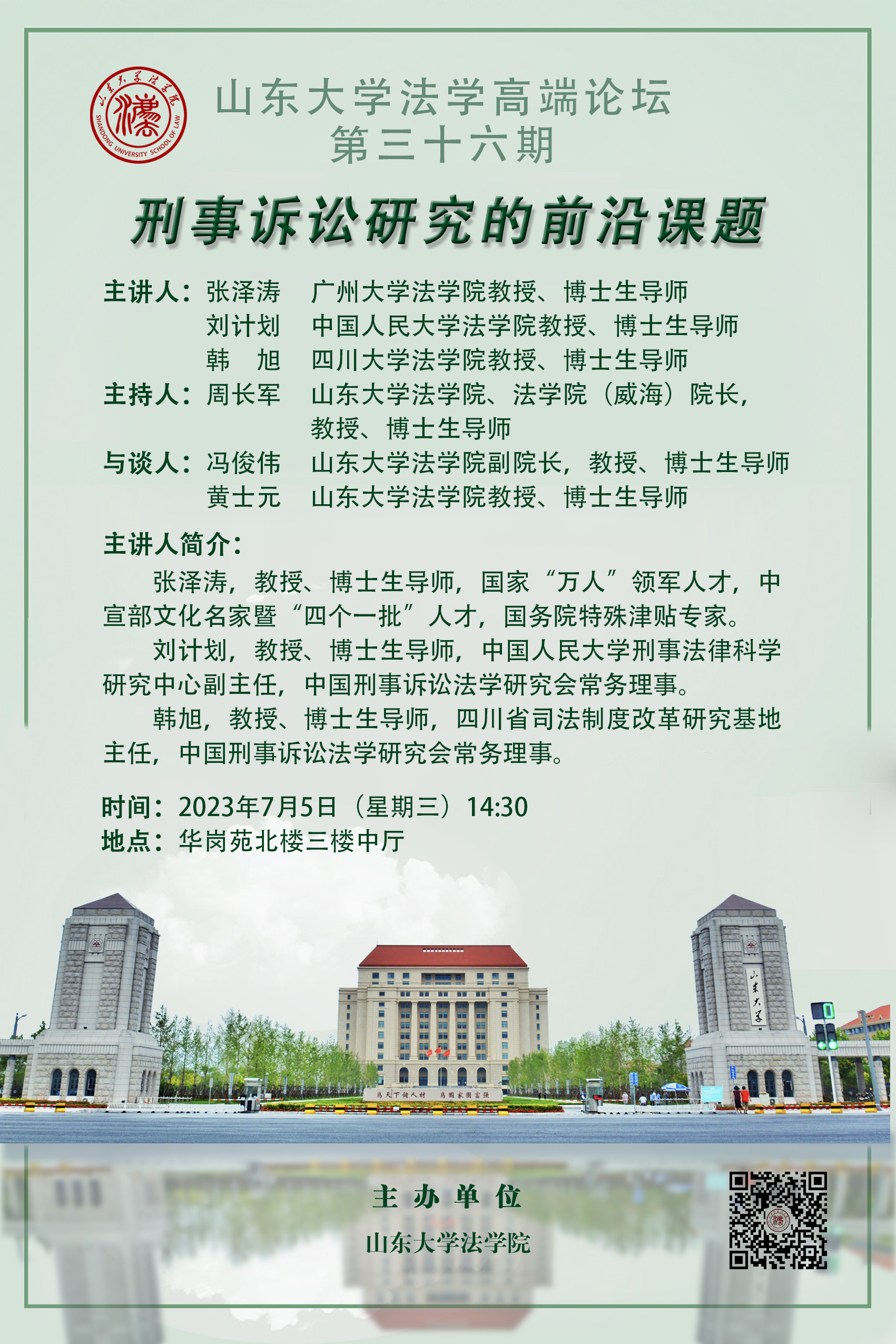講座預(yù)告 | 山東大學(xué)法學(xué)高端論壇第三十六期:刑事訴訟研究的前沿課題