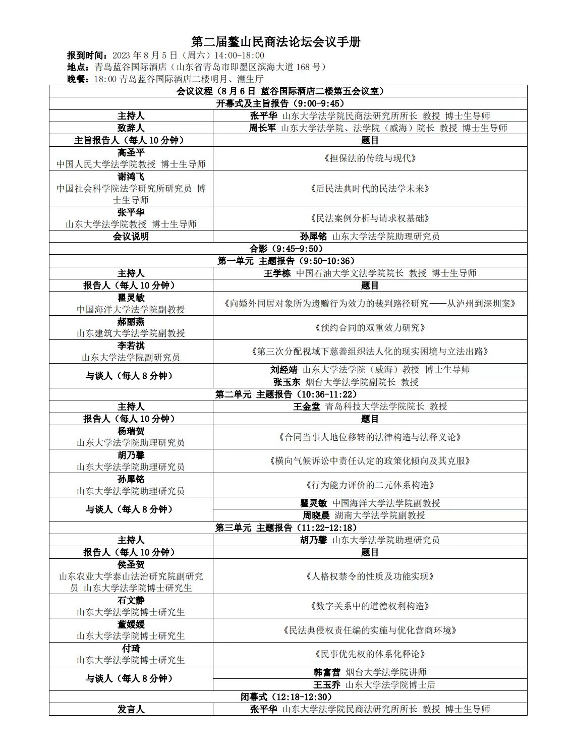 會議議程 | 第二屆鰲山民商法論壇