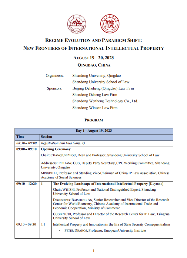 會(huì)議議程 | “國(guó)際知識(shí)產(chǎn)權(quán):制度變遷與范式轉(zhuǎn)換”國(guó)際研討會(huì)