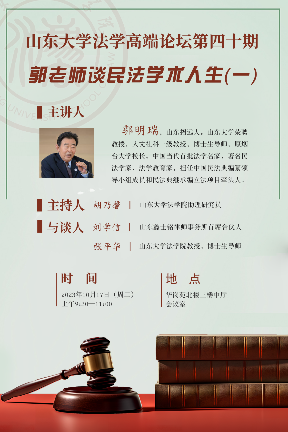 講座預(yù)告 | 山東大學(xué)法學(xué)高端論壇第四十期:郭老師談民法學(xué)術(shù)人生(一)
