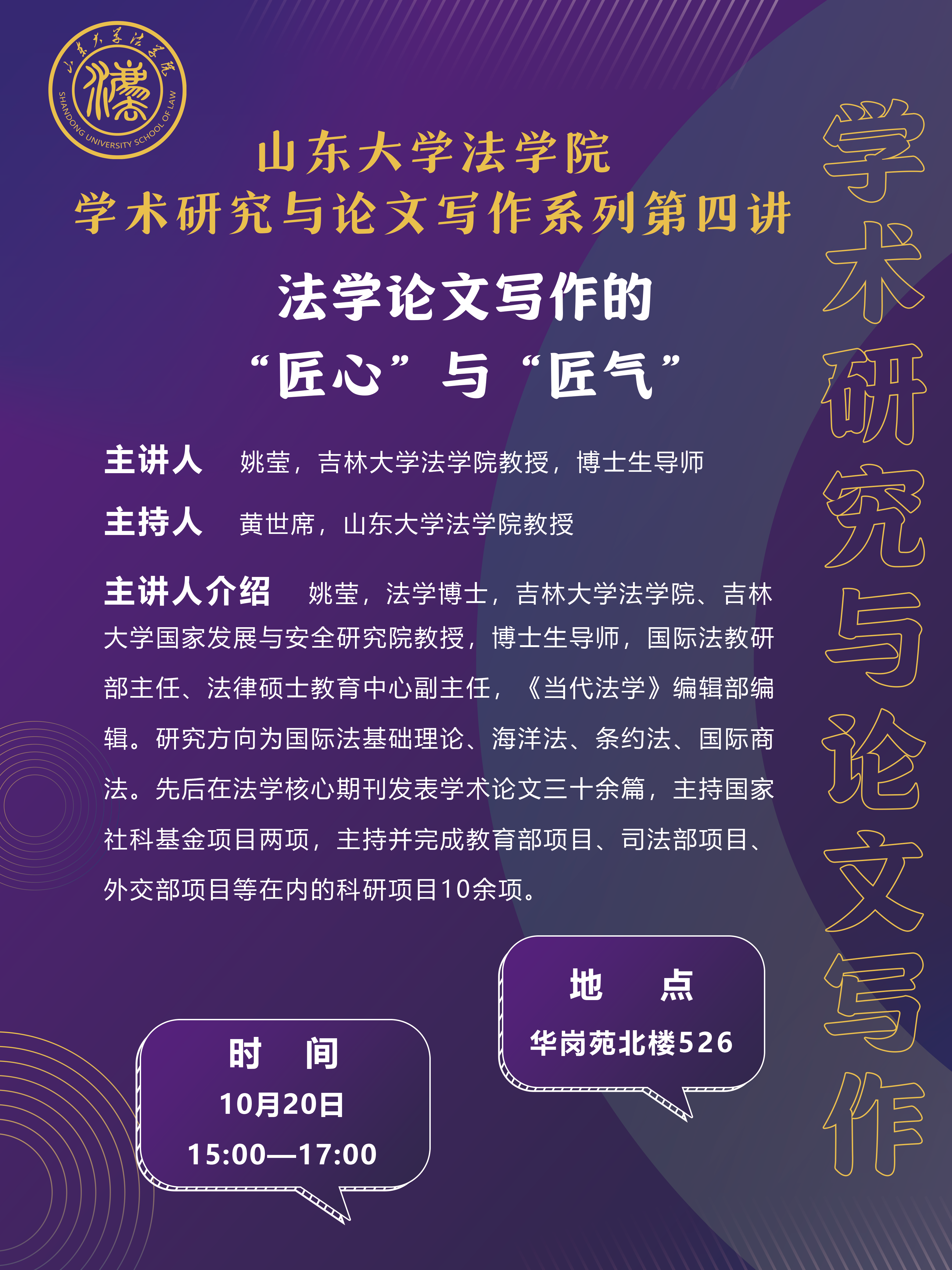 講座預(yù)告 | 山東大學(xué)法學(xué)院學(xué)術(shù)研究與論文寫作系列第四講:法學(xué)論文寫作的“匠心”與“匠氣”