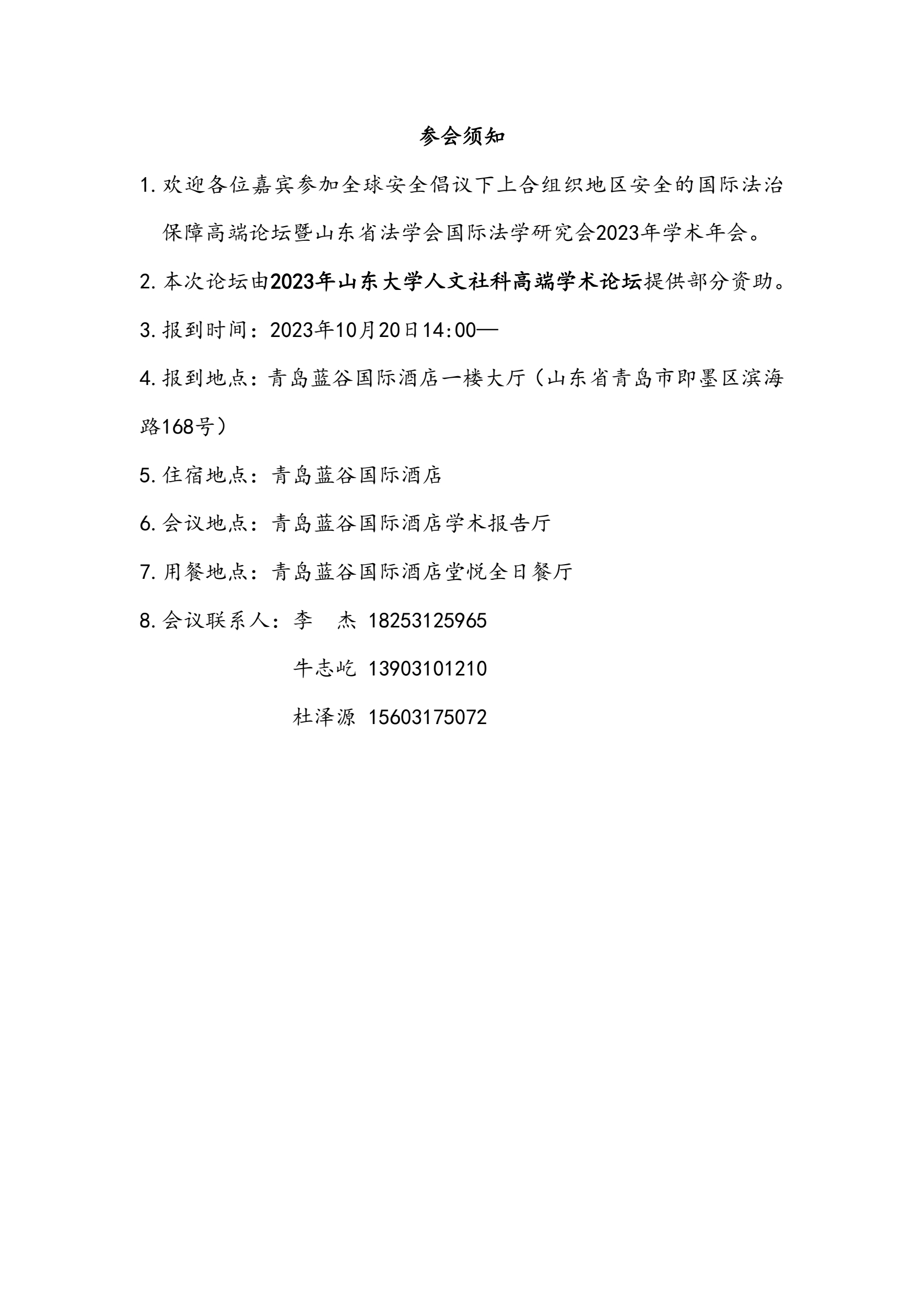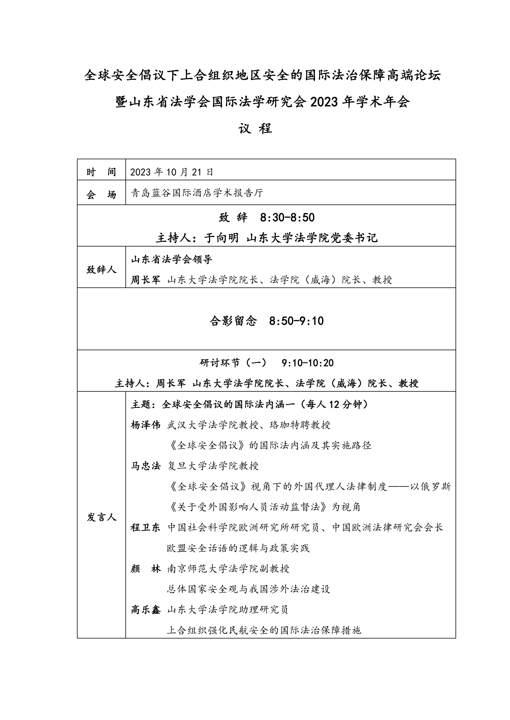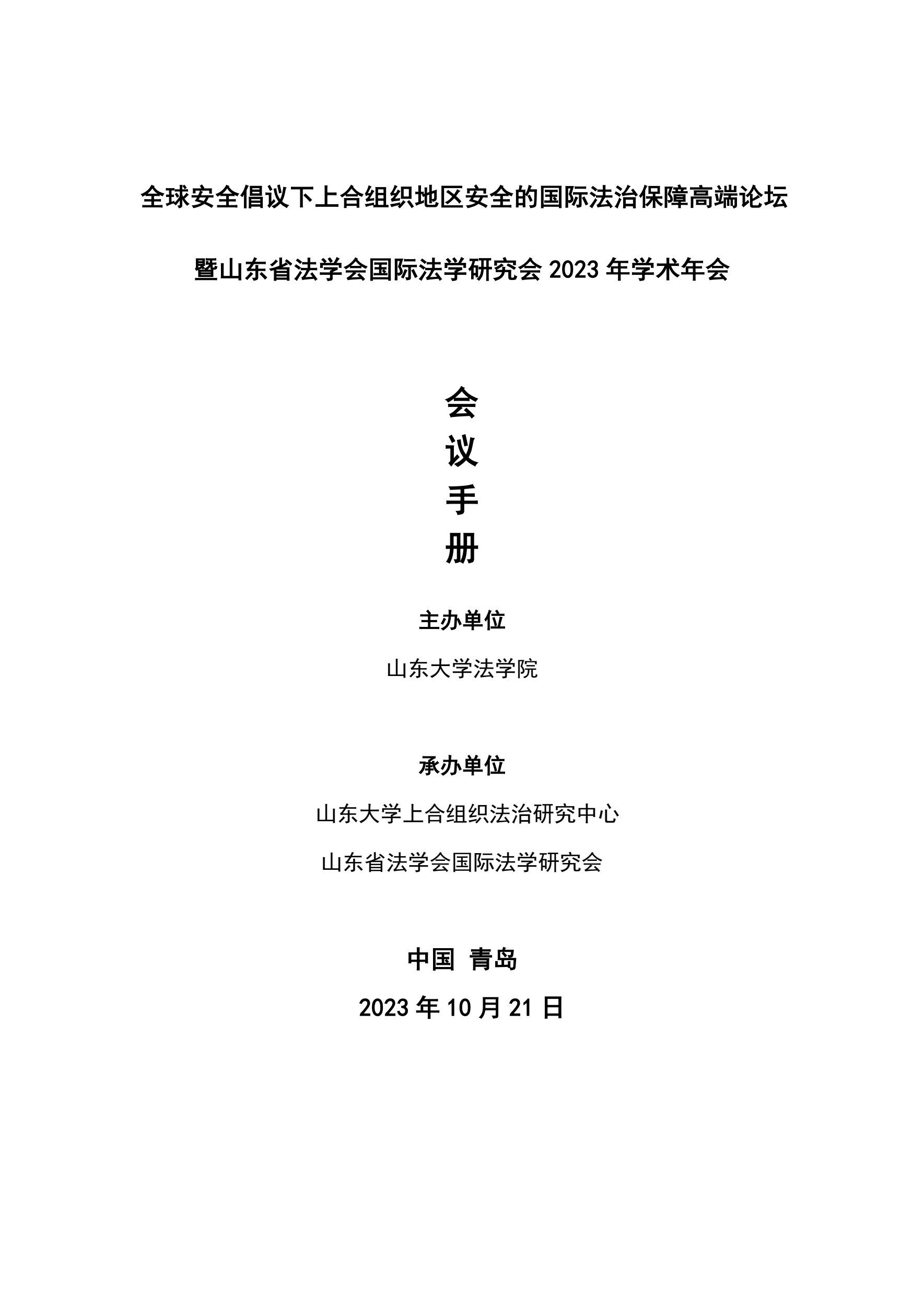 會(huì)議議程 | 全球安全倡議下上合組織地區(qū)安全的國(guó)際法治保障高端論壇暨山東省法學(xué)會(huì)國(guó)際法學(xué)研究會(huì)2023年學(xué)術(shù)年會(huì)