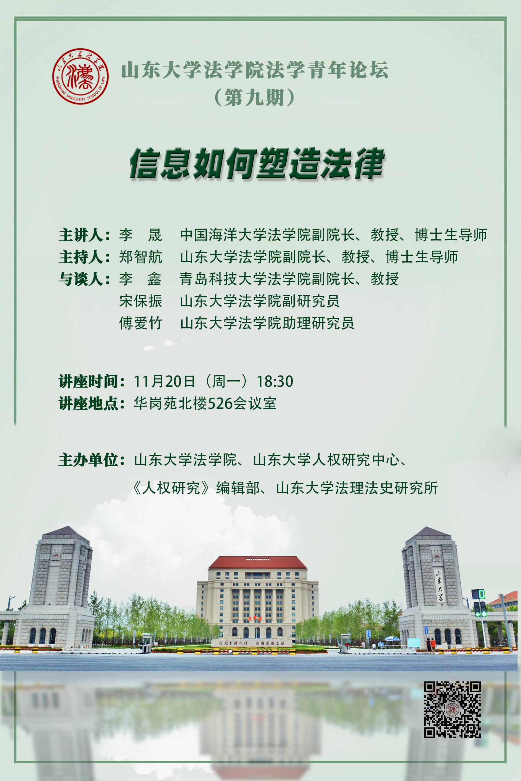 講座預(yù)告 | 山東大學(xué)法學(xué)院法學(xué)青年論壇(第九期):信息如何塑造法律