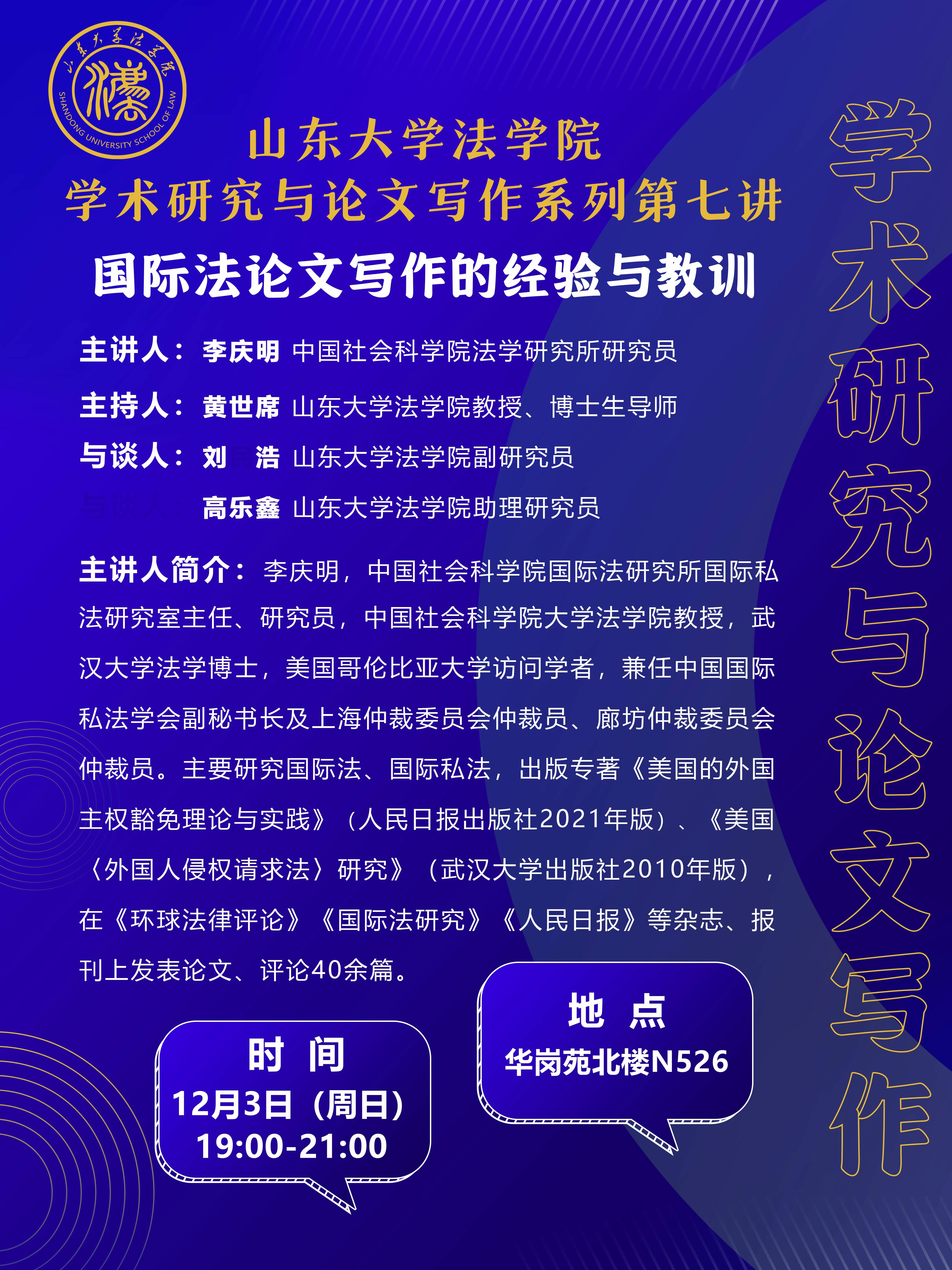 講座預告 | 山東大學法學院學術(shù)研究與論文寫作系列第七講:國際法論文寫作的經(jīng)驗與教訓