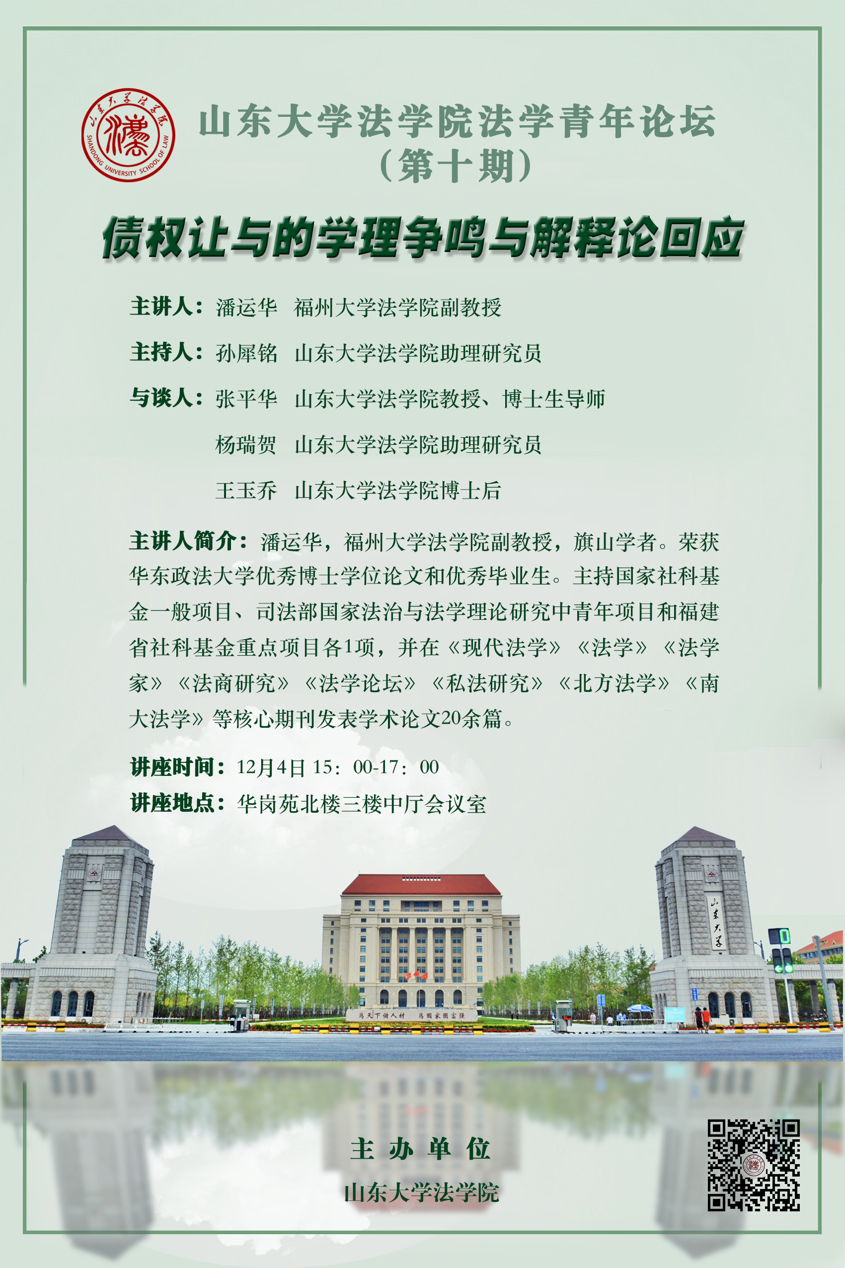 講座預告 | 山東大學法學院法學青年論壇(第十期):債權(quán)讓與的學理爭鳴與解釋論回應