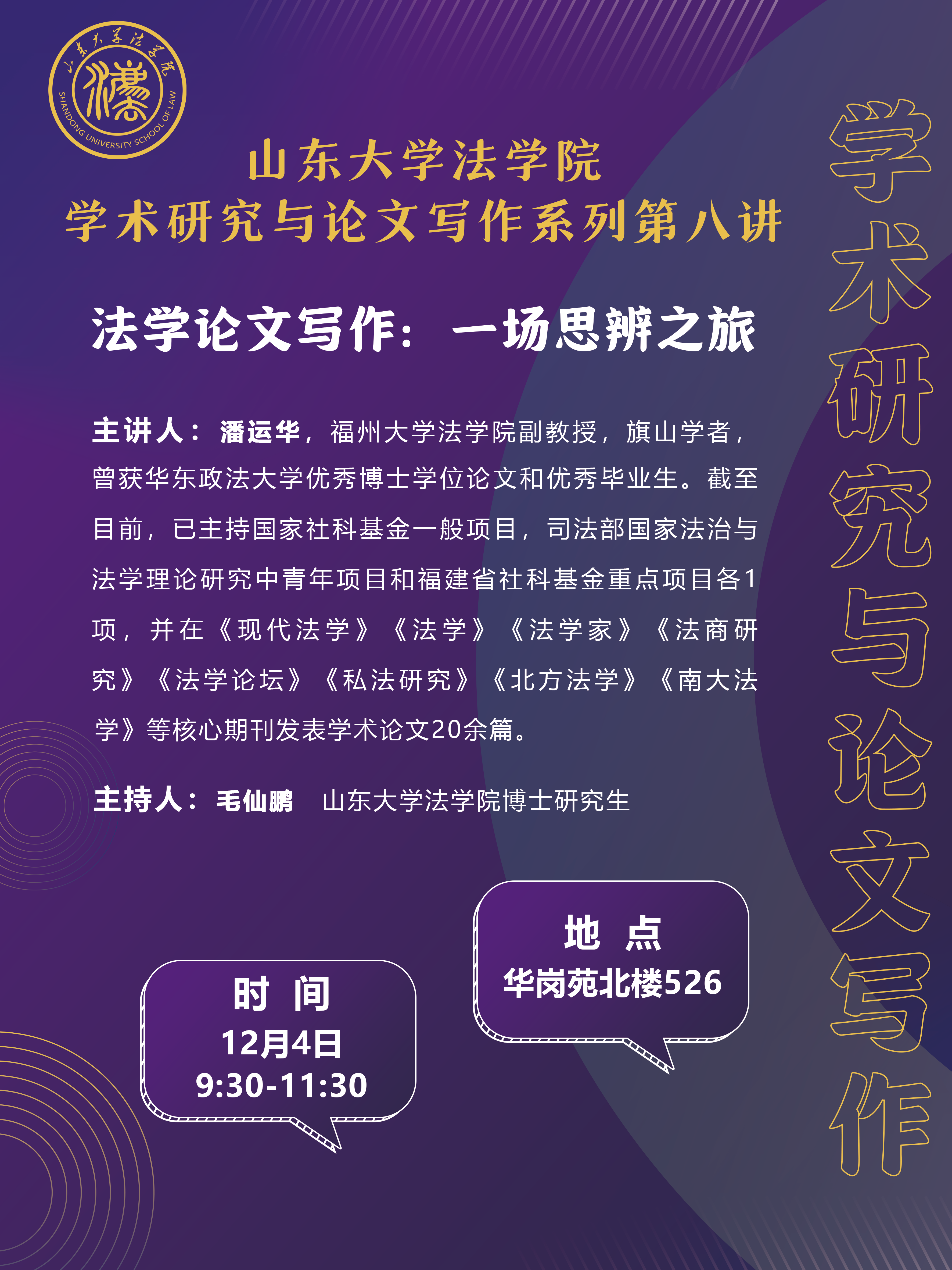 講座預(yù)告 | 山東大學(xué)法學(xué)院學(xué)術(shù)研究與論文寫作系列第八講——法學(xué)論文寫作:一場思辨之旅