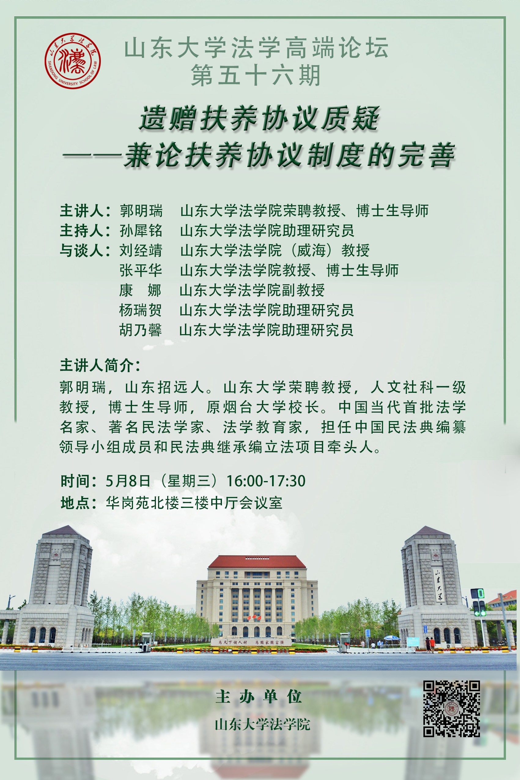 講座預(yù)告 | 山東大學(xué)法學(xué)高端論壇第五十六期:遺贈(zèng)扶養(yǎng)協(xié)議質(zhì)疑——兼論扶養(yǎng)協(xié)議制度的完善