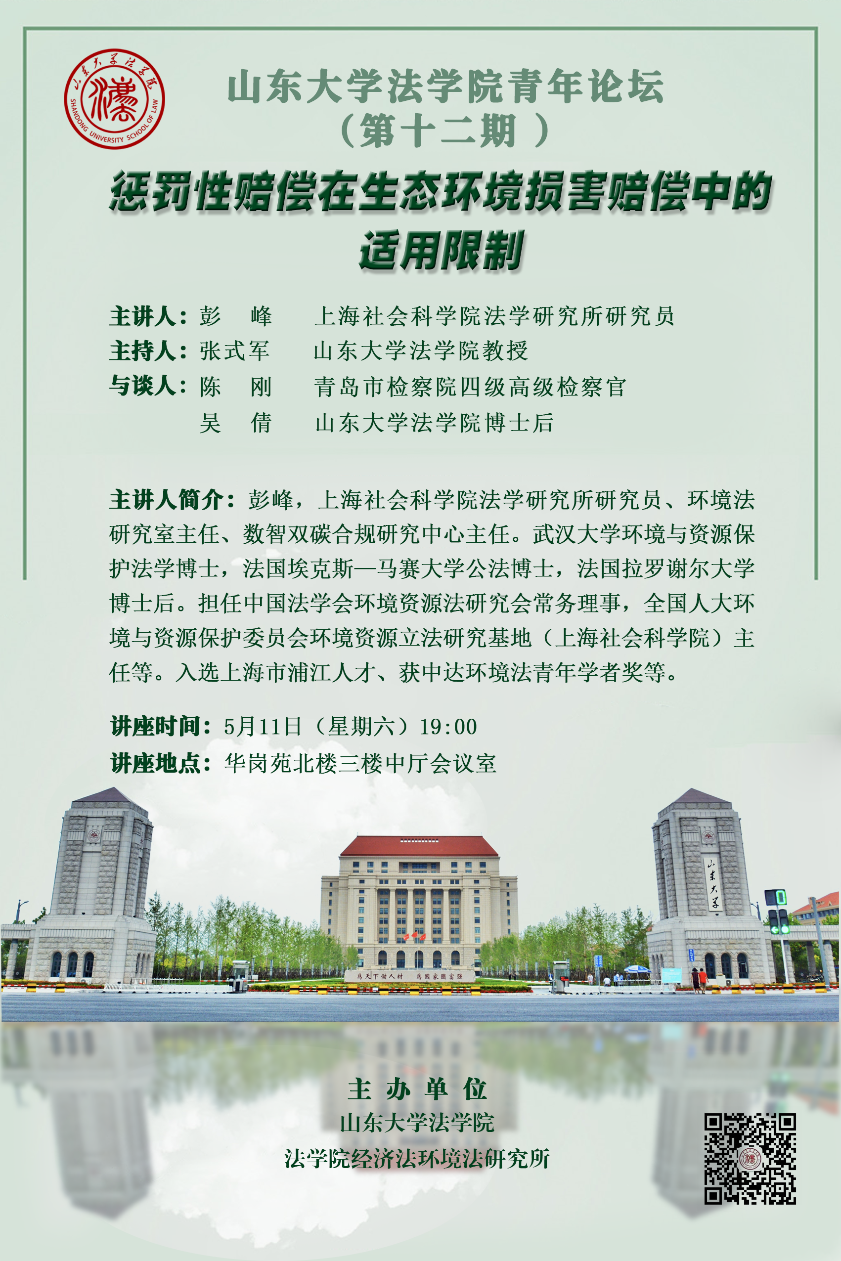 講座預(yù)告 | 山東大學(xué)法學(xué)院青年論壇(第十二期):懲罰性賠償在生態(tài)環(huán)境損害賠償中的適用限制