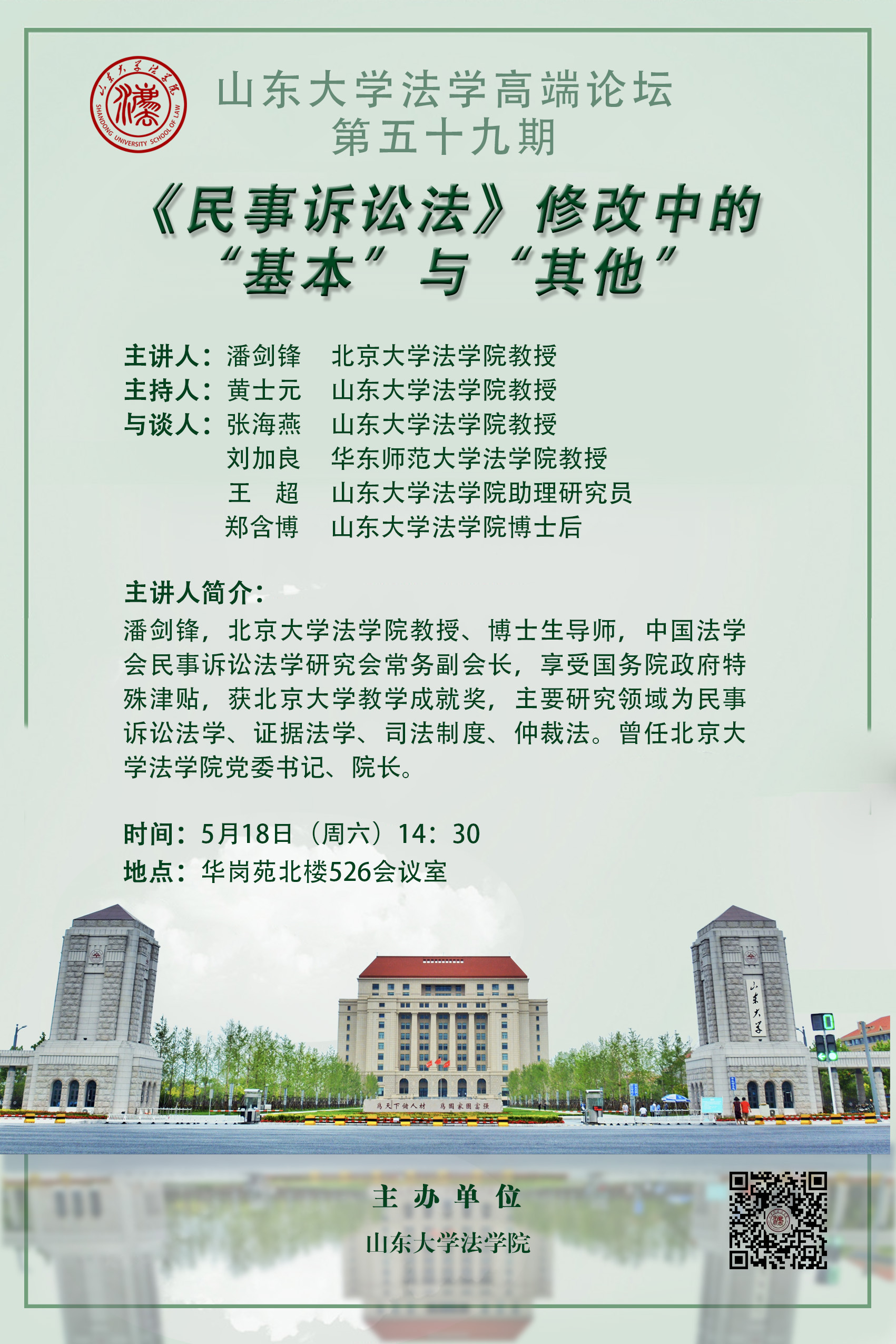 講座預告 | 山東大學法學高端論壇第五十九期:《民事訴訟法》修改中的“基本”與“其他”