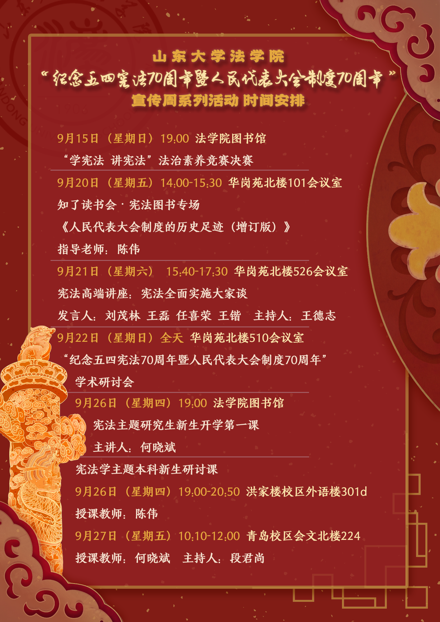 學術活動預告 | “紀念五四憲法70周年暨人民代表大會制度70周年”宣傳周系列活動時間安排