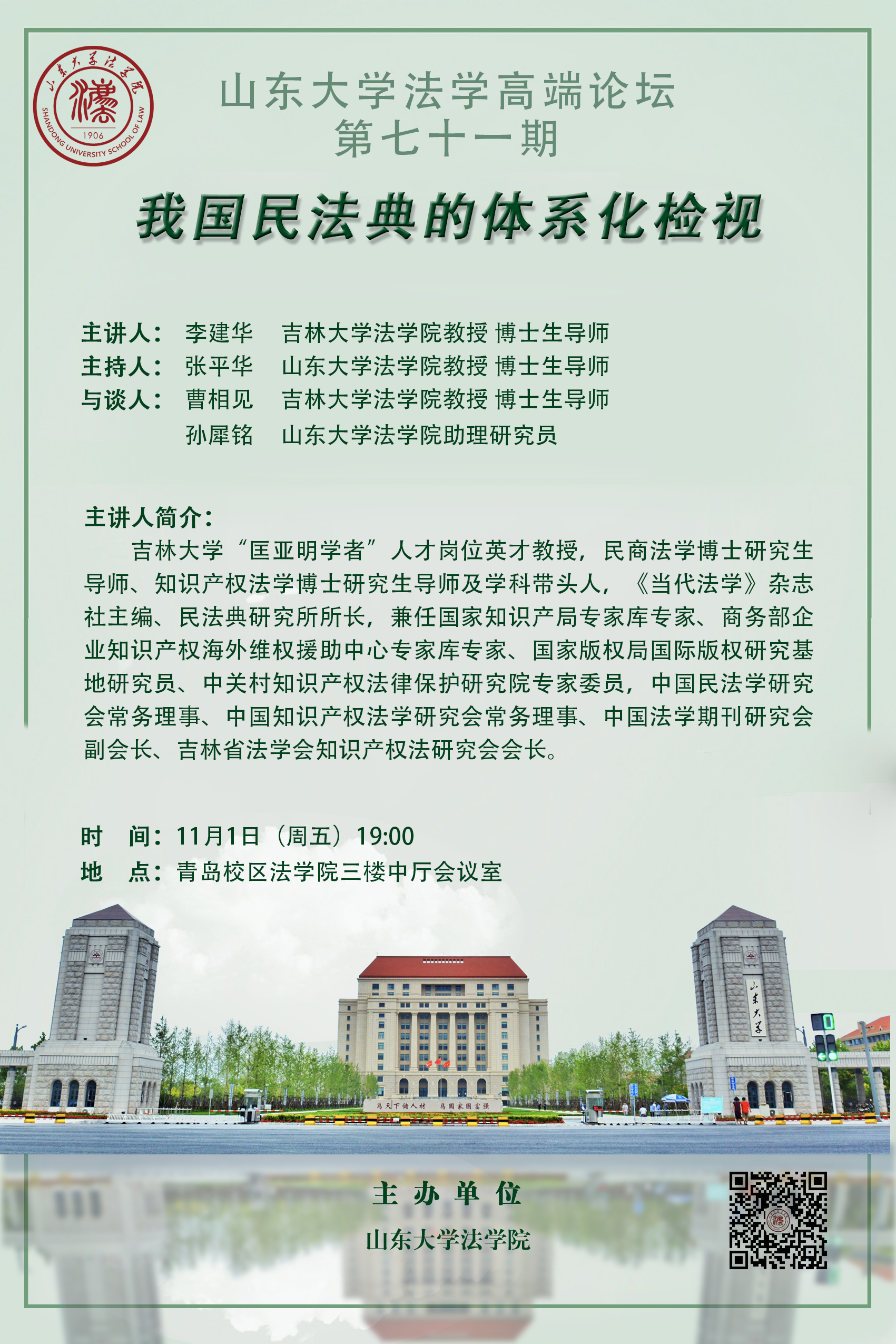講座預(yù)告|山東大學(xué)法學(xué)高端論壇第七十一期:我國(guó)民法典的體系化檢視
