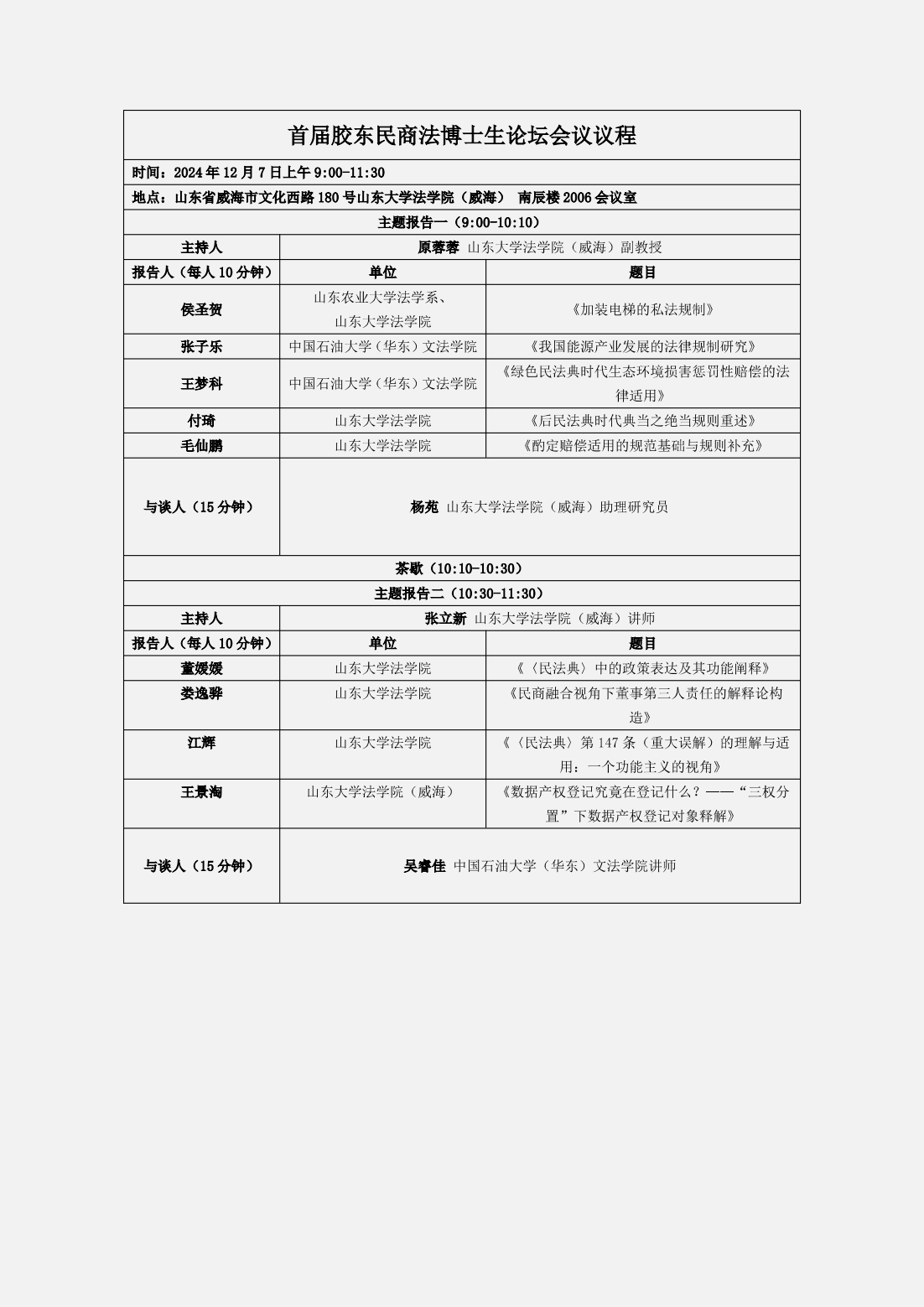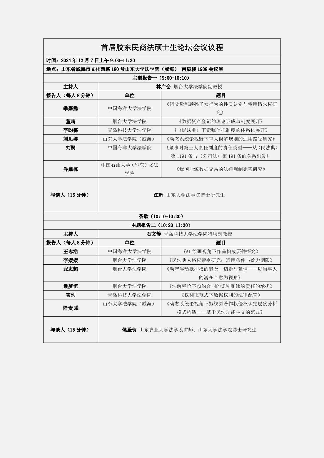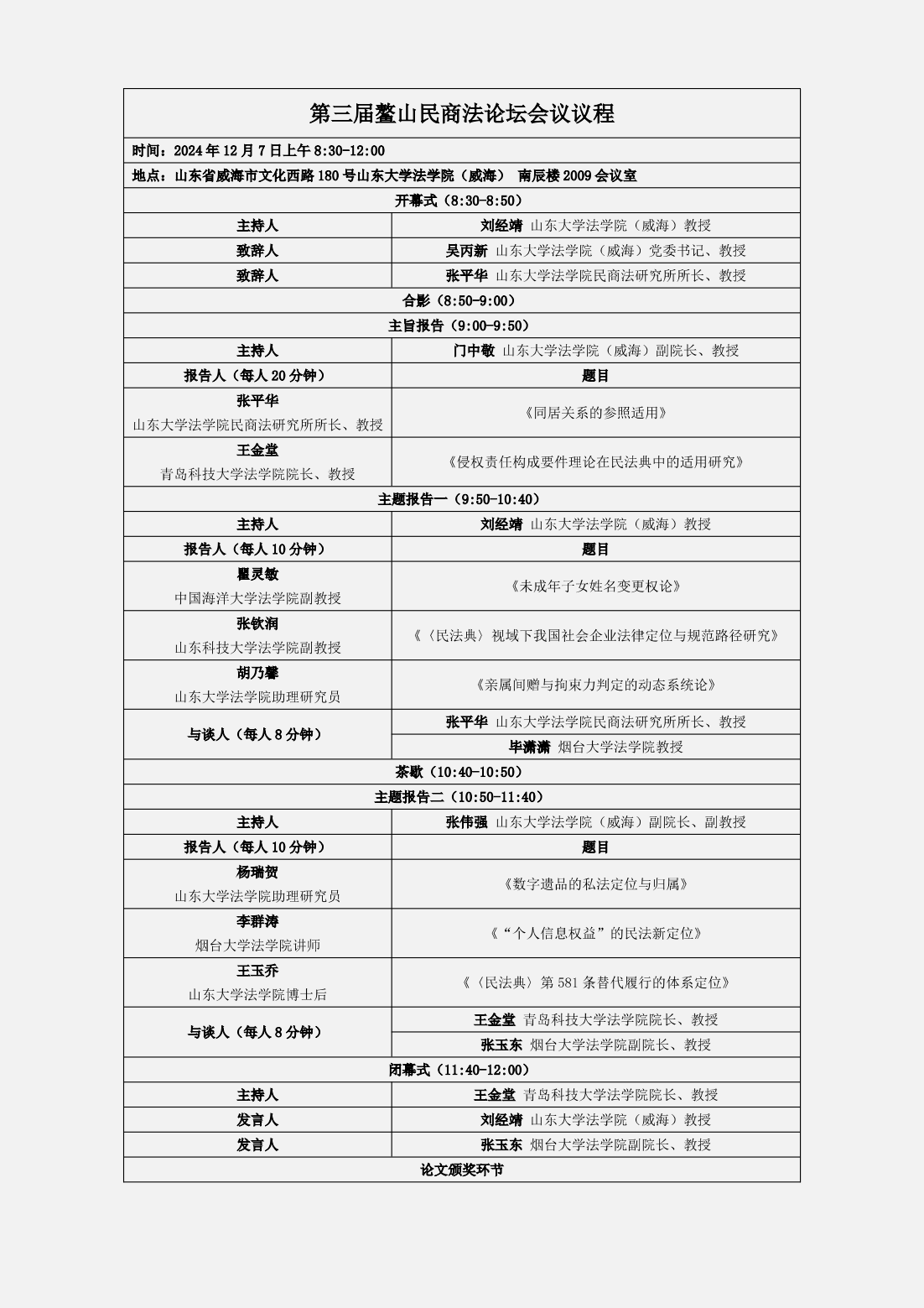 會議議程 | 第三屆鰲山民商法論壇暨首屆膠東民商法研究生論壇