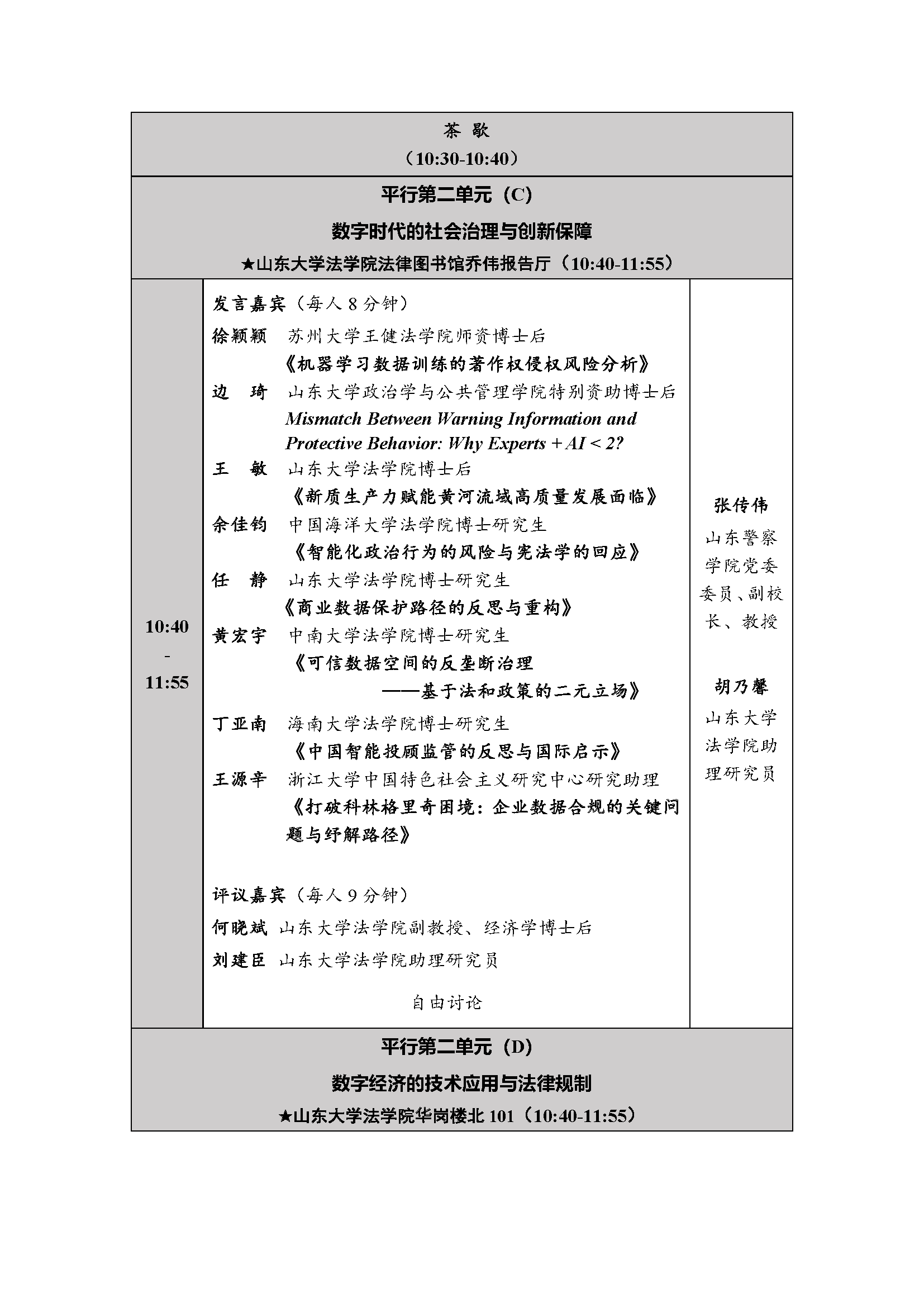 會議議程|數(shù)字法治與社會經(jīng)濟發(fā)展博士后交叉創(chuàng)新論壇