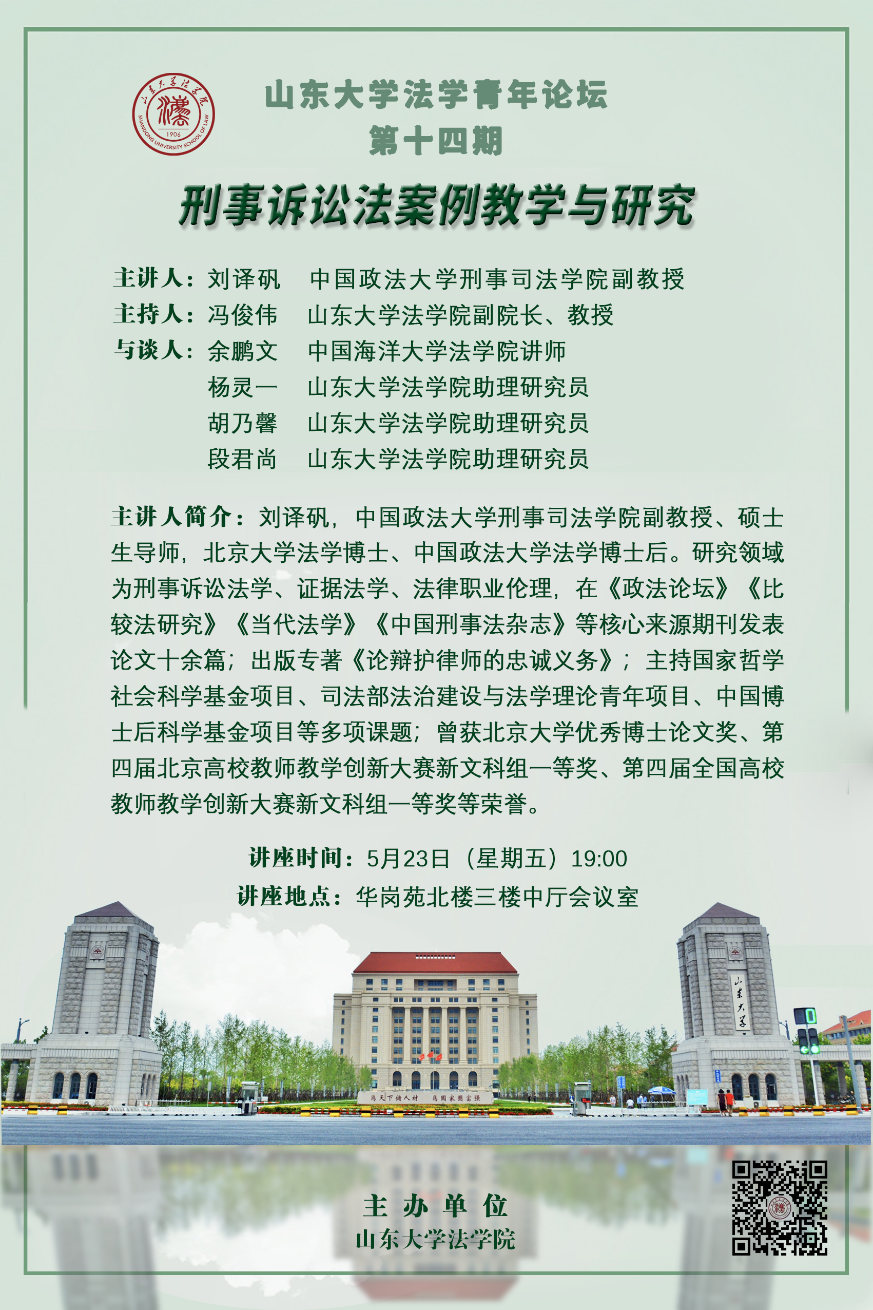 講座預(yù)告 | 山東大學(xué)法學(xué)青年論壇第十四期:刑事訴訟法案例教學(xué)與研究