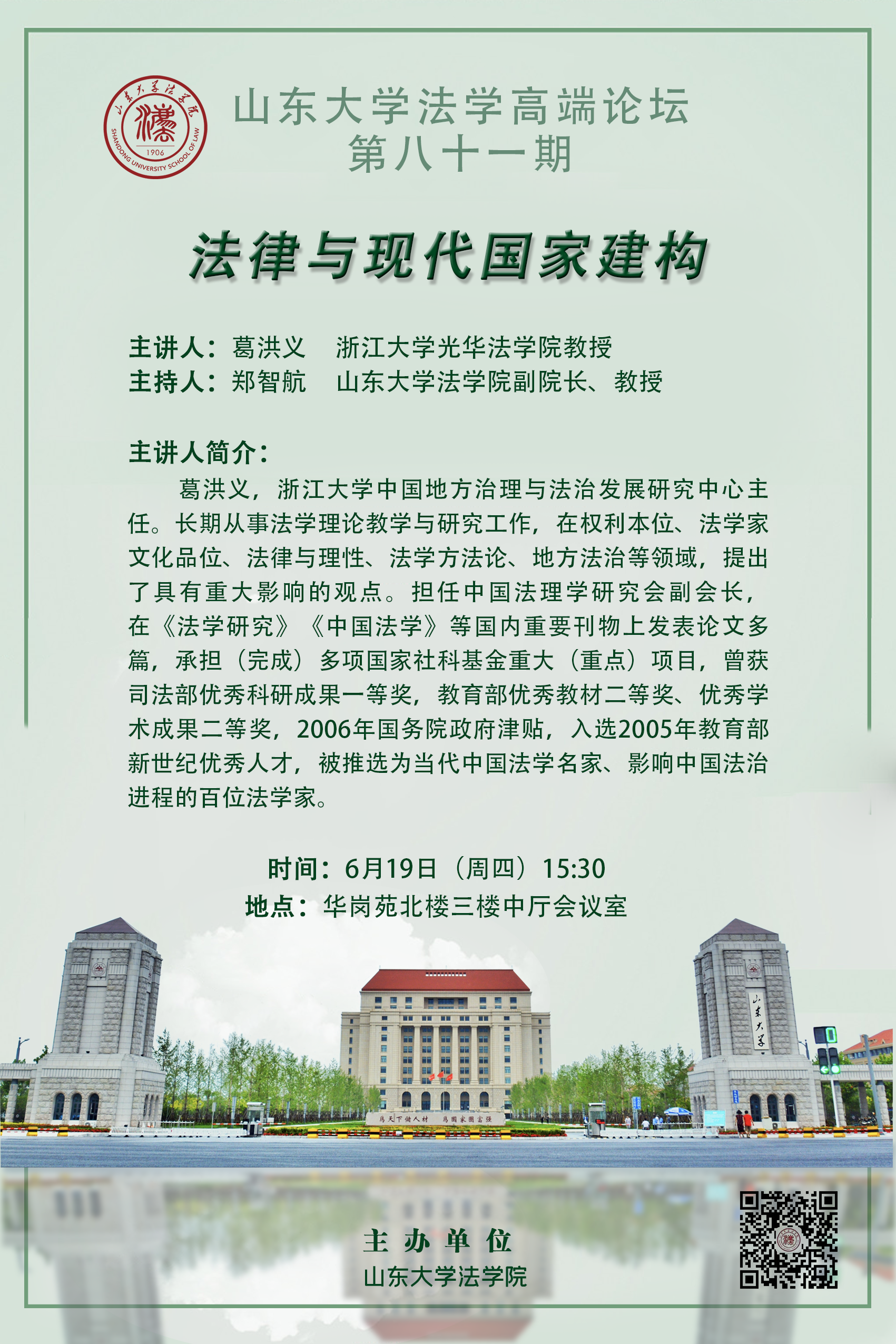 講座預告 | 山東大學法學高端論壇第八十一期:法律與現(xiàn)代國家建構