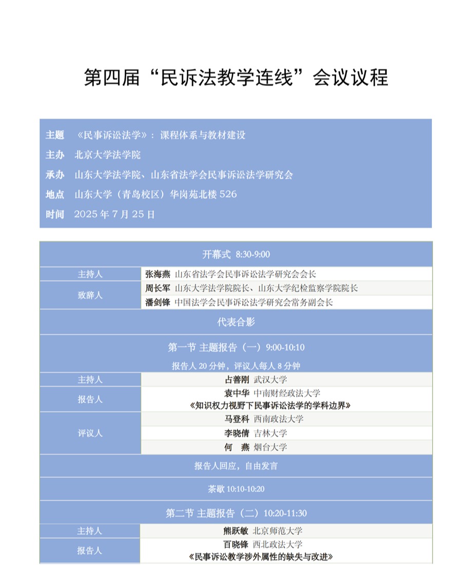 通知公告 | 第四屆“民訴法教學(xué)連線”會(huì)議議程