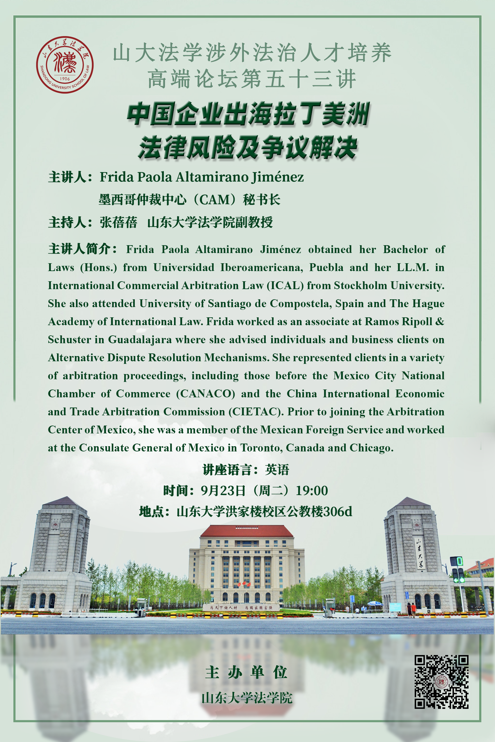 講座預(yù)告 | 山大法學(xué)涉外法治人才培養(yǎng)高端論壇第五十三講:中國企業(yè)出海拉丁美洲法律風(fēng)險(xiǎn)及爭議解決