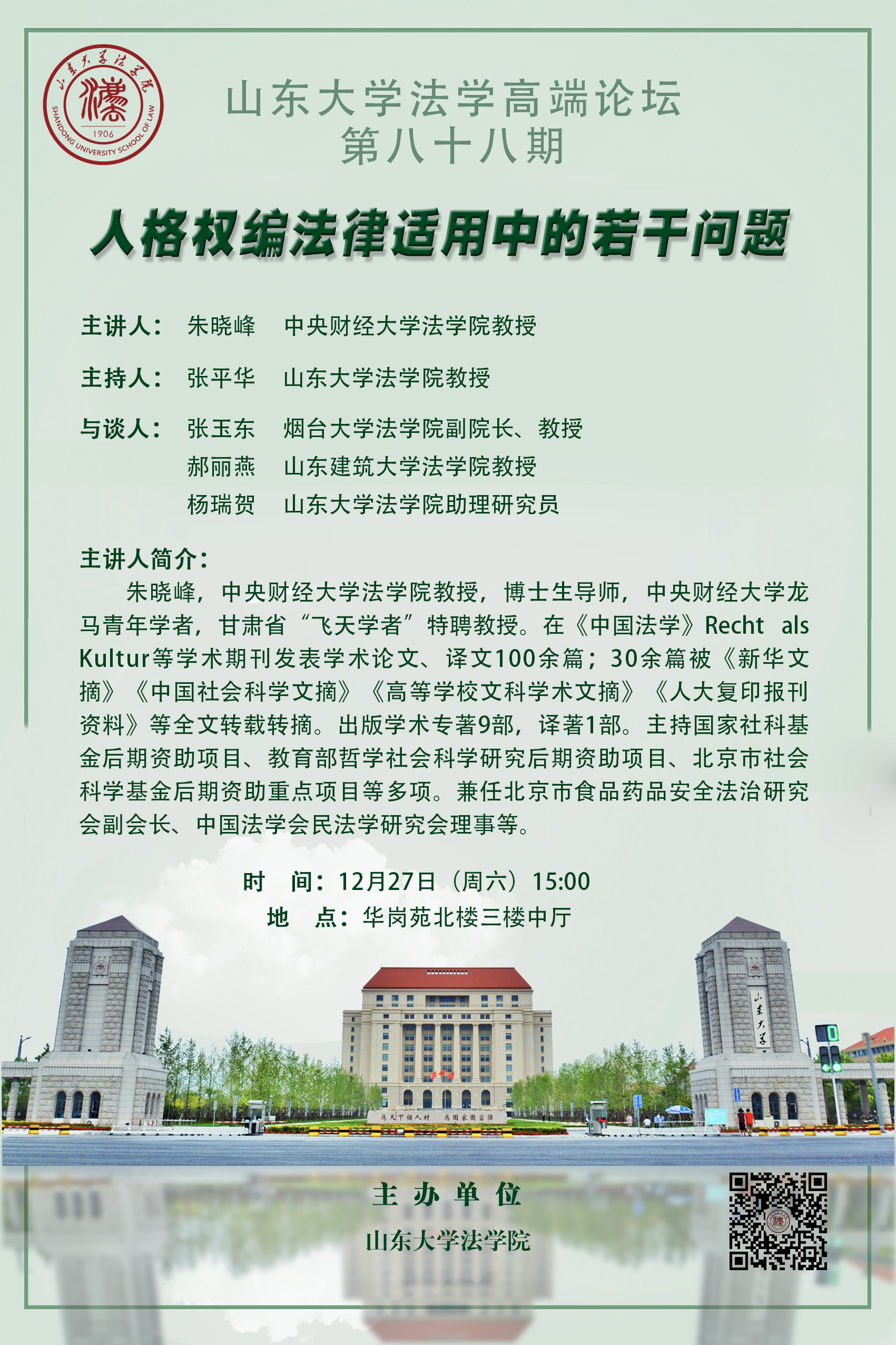 講座預(yù)告 | 山東大學(xué)法學(xué)高端論壇第八十八期:人格權(quán)編法律適用中的若干問(wèn)題