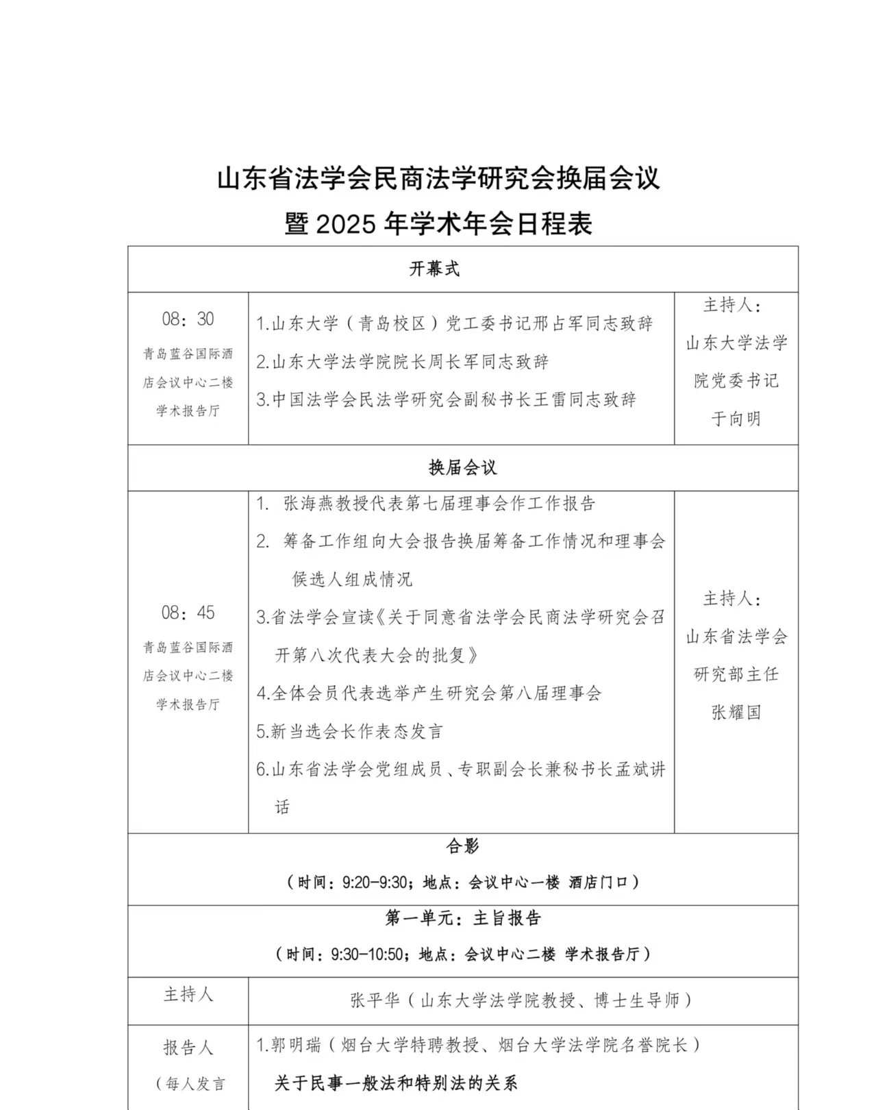 會議議程 | 山東省法學會民商法學研究會第八次會員大會暨2025年學術會議
