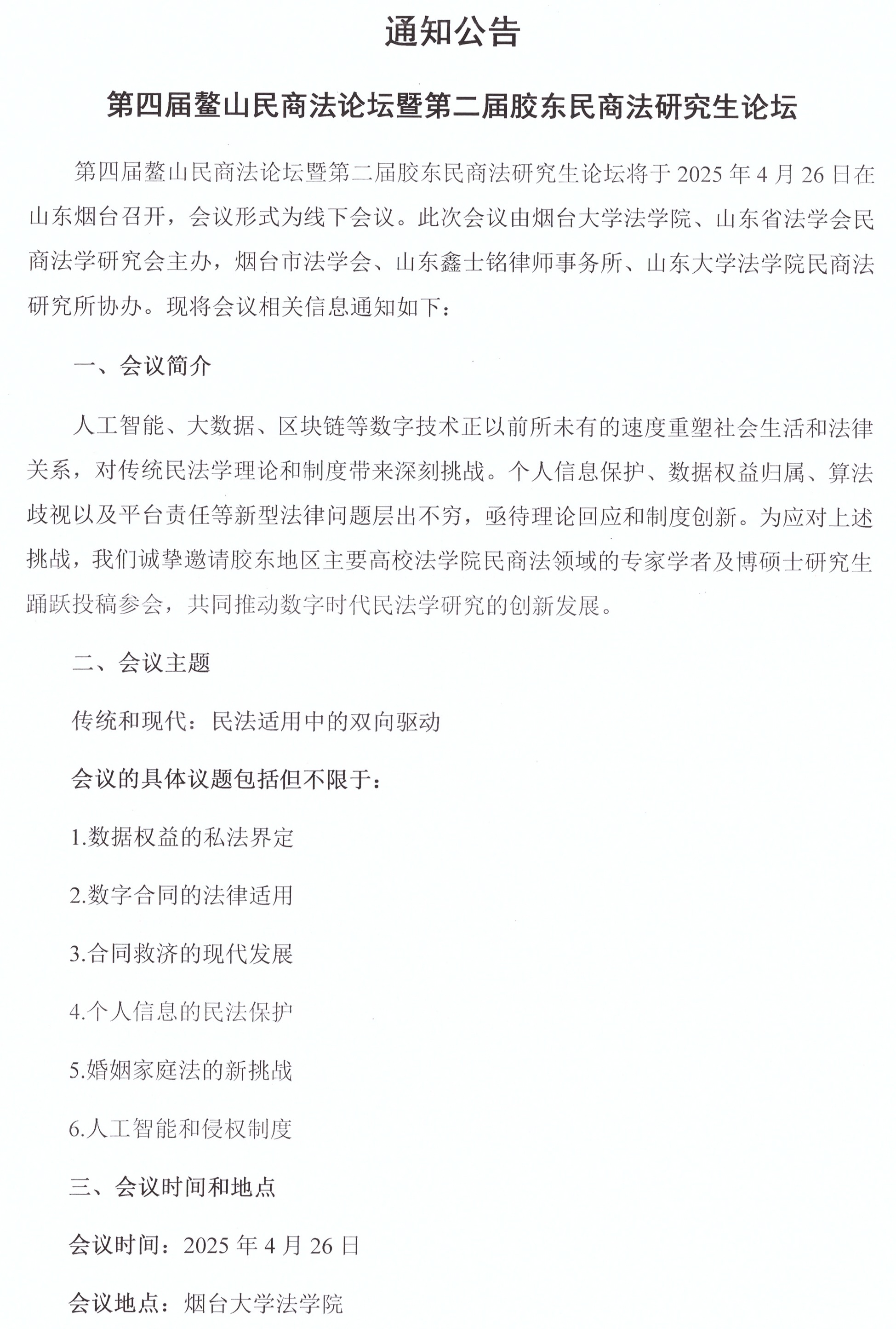 第四屆鰲山民商法論壇暨第二屆膠東民商法研究生論壇