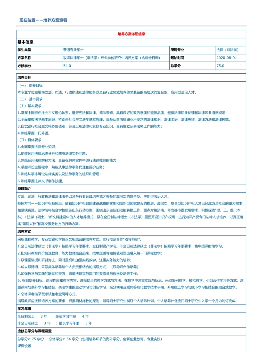 山東大學(xué)法學(xué)院攻讀法律(非法學(xué))專業(yè)型碩士學(xué)位研究生培養(yǎng)方案