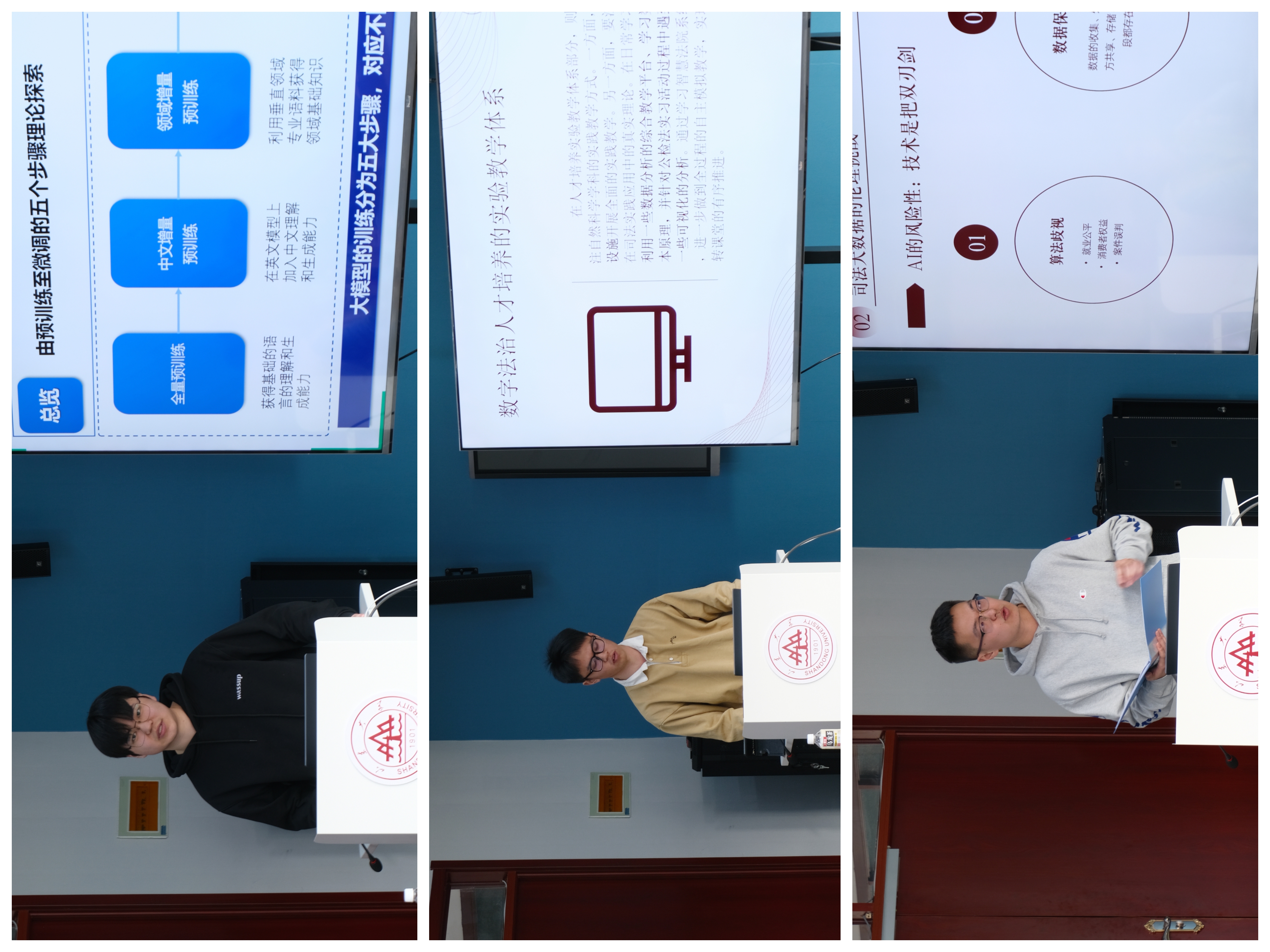 報(bào)告與分享環(huán)節(jié),法學(xué)院的王澤龍以《復(fù)合型數(shù)字法治人才培養(yǎng)的基本理念與實(shí)踐模式》為主題,深入剖析當(dāng)下數(shù)字法治人才培養(yǎng)的現(xiàn)實(shí)狀況,并從跨學(xué)科課程融合、產(chǎn)學(xué)研協(xié)同育人等角度,為培養(yǎng)適應(yīng)數(shù)字時(shí)代需求的法治人才提供了新思路。計(jì)算機(jī)科學(xué)與技術(shù)學(xué)院的王文宇帶來《夫子?明察司法大模型》報(bào)告,他詳細(xì)闡述了模型的架構(gòu)設(shè)計(jì)、運(yùn)行原理,通過實(shí)際案例演示,讓與會(huì)黨員直觀感受到人工智能在司法領(lǐng)域的巨大應(yīng)用潛力。信息科學(xué)與工程學(xué)院的藍(lán)一翔以《司法大數(shù)據(jù)探索》為題展開探討,聚焦大數(shù)據(jù)技術(shù)在司法實(shí)踐中的應(yīng)用,深入挖掘背后隱藏的倫理挑戰(zhàn),如數(shù)據(jù)隱私保護(hù)、算法歧視等問題,并從技術(shù)革新、制度完善等方面,描繪了司法大數(shù)據(jù)助力法治建設(shè)的美好藍(lán)圖。
