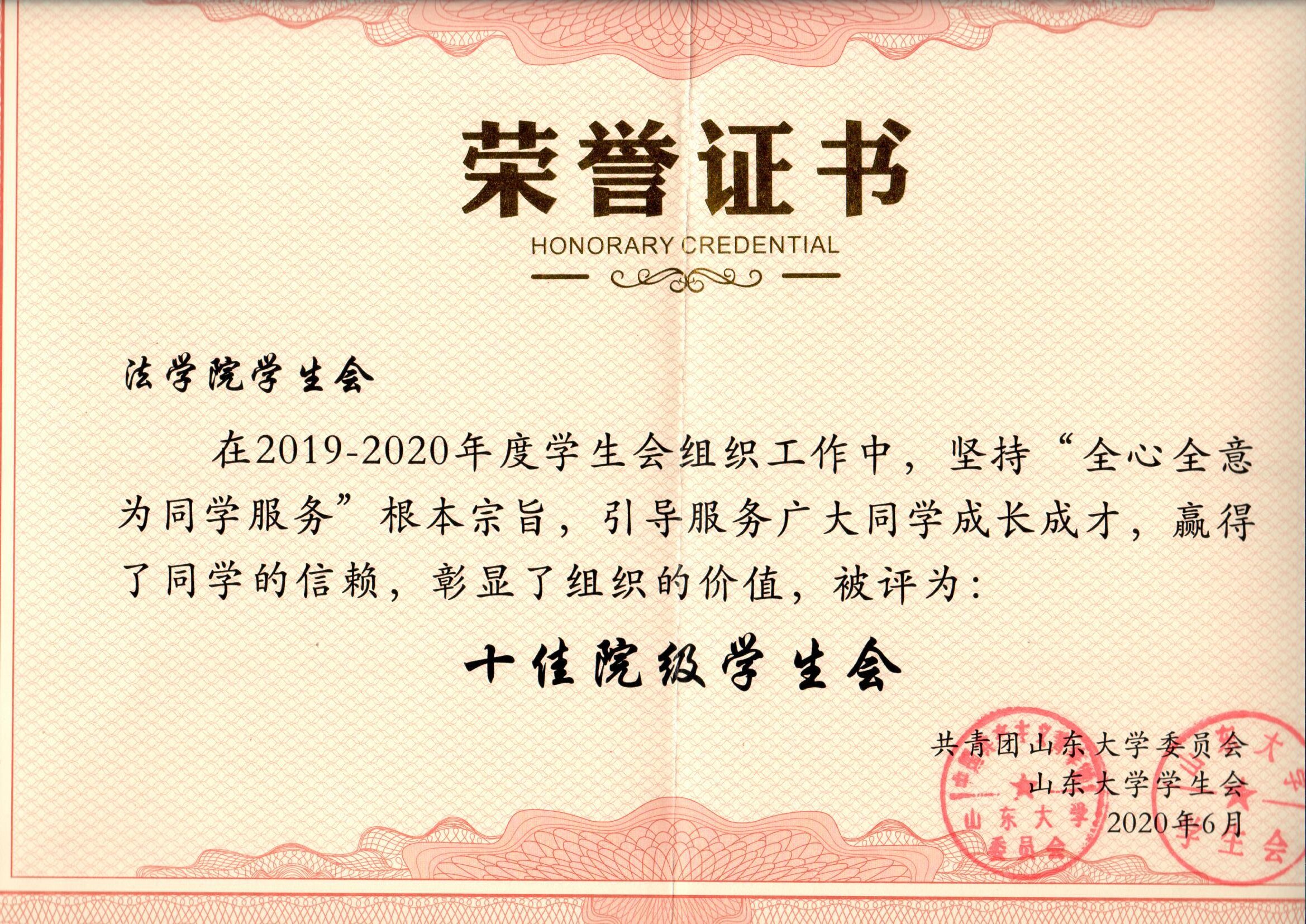 山東大學(xué)2019-2020年度“十佳院級(jí)學(xué)生會(huì)”: