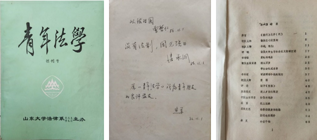 ◇《青年法學(xué)》,校長潘承洞為之題詞“沒有法制,國無強(qiáng)日”