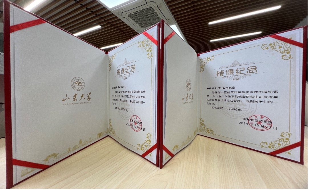 10月23日,山東省人民檢察院四級高級檢察官李修娟與淄博市張店區(qū)人民檢察院專委王宣立為我院碩士研究生講授檢察行政公益訴訟理論與實踐,何曉斌副教授擔任主持人。