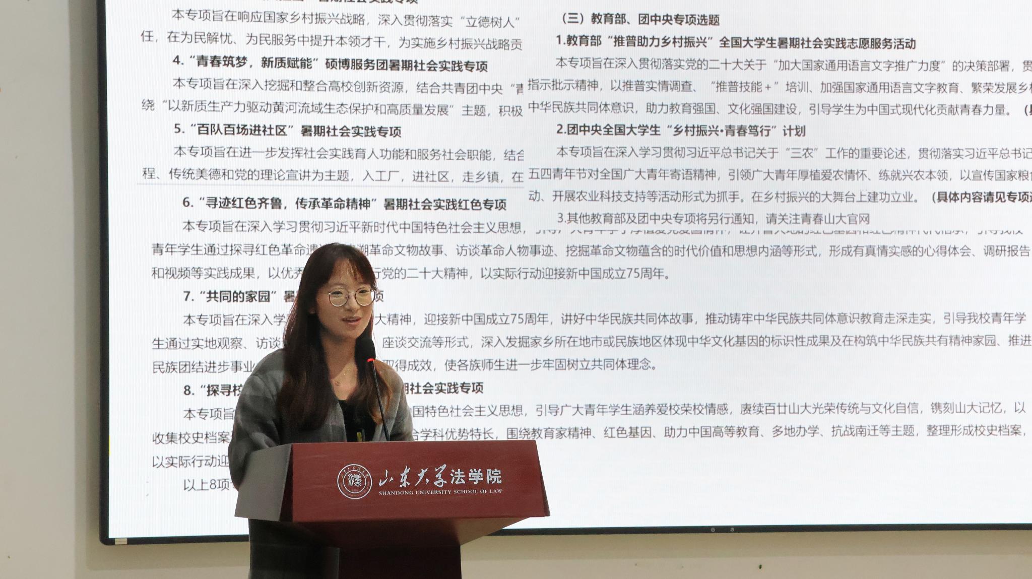 “法助分途”團(tuán)隊(duì)的高佳慧從怎樣選題、怎樣開(kāi)展、怎樣宣傳三個(gè)方面對(duì)社會(huì)實(shí)踐流程進(jìn)行了細(xì)致的講解。她表示,在選題時(shí),要始終踐行為民初心,關(guān)注社會(huì)熱點(diǎn),并結(jié)合法學(xué)學(xué)科特色,從日常生活和切身體會(huì)出發(fā),提出有意義的問(wèn)題。同時(shí),她詳細(xì)分析了各大宣傳平臺(tái)的優(yōu)勢(shì)和特點(diǎn),特別是團(tuán)隊(duì)創(chuàng)新的“營(yíng)銷(xiāo)號(hào)宣傳方式”,讓同學(xué)們印象深刻,獲益匪淺。