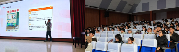 首先,孫垚聚焦校園安全重點(diǎn)領(lǐng)域,講述了校園及周邊潛在安全風(fēng)險(xiǎn)。在交通安全環(huán)節(jié),他結(jié)合校園交通事故案例,提醒同學(xué)們外出通行要時(shí)刻關(guān)注安全,騎電動(dòng)車時(shí)務(wù)必遵守規(guī)范,要佩戴頭盔、不違規(guī)載人、不單手騎車、不騎車看手機(jī)、電動(dòng)車電池不進(jìn)宿舍樓等;在防溺水安全環(huán)節(jié),他為同學(xué)們提供了周邊海域溺水風(fēng)險(xiǎn)以及落水后的自救技巧;在反詐教育環(huán)節(jié),他通過校園詐騙實(shí)例,講解了網(wǎng)絡(luò)貸款、刷單等常見的詐騙手段,為同學(xué)們敲響警鐘。