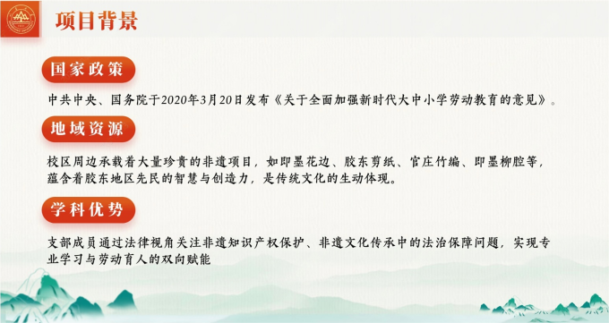 在深化勞動(dòng)教育與文化傳承創(chuàng)新的時(shí)代背景下,本次實(shí)踐交流活動(dòng)匯聚了9 支法學(xué)院的優(yōu)秀團(tuán)隊(duì),他們緊扣社會(huì)發(fā)展需求與文化傳承使命,聚焦于非物質(zhì)文化遺產(chǎn)傳承實(shí)踐、民俗文化勞動(dòng)實(shí)踐、特色產(chǎn)業(yè)勞動(dòng)教育三個(gè)實(shí)踐主題,每支團(tuán)隊(duì)各展其能,圍繞團(tuán)隊(duì)項(xiàng)目背景、實(shí)施方案以及預(yù)期成果等方面展開(kāi)介紹,充分展現(xiàn)了法學(xué)院學(xué)子昂揚(yáng)向上的勞動(dòng)精神、扎實(shí)過(guò)硬的實(shí)踐能力與勇于擔(dān)當(dāng)?shù)臅r(shí)代風(fēng)貌。