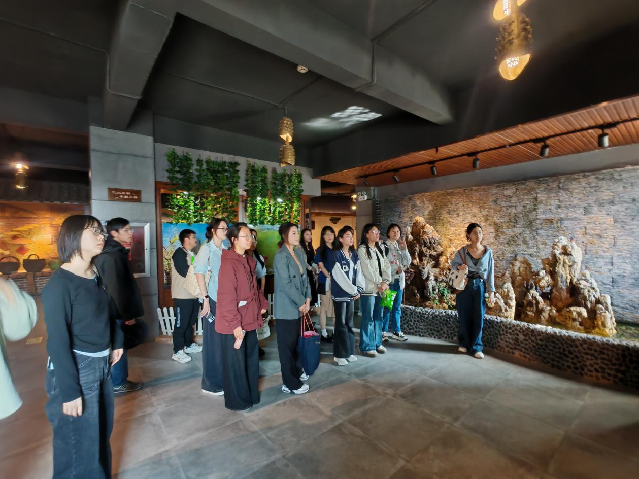 在博物館講解員的帶領下,團支部成員依次參觀了博物館的各個展區(qū)。博物館共分三層:一層為歷史文化展區(qū),通過豐富的圖文資料與實物展陳,介紹了即墨老酒從春秋戰(zhàn)國至現(xiàn)代的發(fā)展歷程;二層為傳統(tǒng)工藝展區(qū),展示了老酒釀造的工具、流程及“古遺六法”的具體操作,同學們近距離觀察了發(fā)酵缸、木榨機等傳統(tǒng)器具,深刻體會到傳統(tǒng)釀造的嚴謹與精細;三層為現(xiàn)代創(chuàng)新展區(qū),呈現(xiàn)了即墨老酒在當代的品牌發(fā)展與社會貢獻。通過系統(tǒng)參觀,同學們對即墨老酒的歷史價值、工藝精髓和文化內涵有了更加全面的認識。