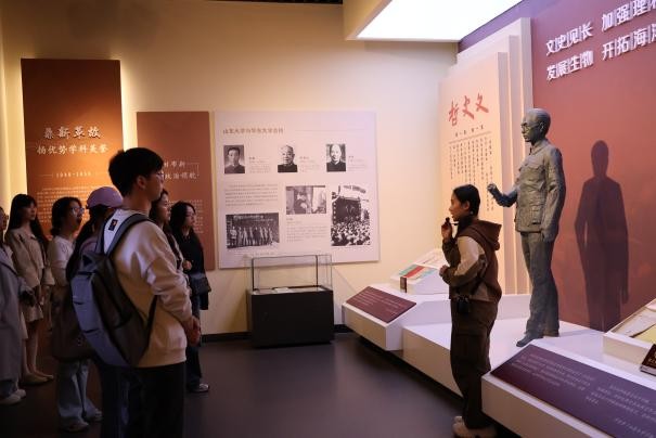 讀書交流分享環(huán)節(jié),支部成員積極分享讀書感悟,與來自文化遺產(chǎn)研究院的同學(xué)展開熱烈討論。2024級法律(法學(xué))班團支部王潘結(jié)合本專業(yè)學(xué)習(xí)分享《終身成長》一書,探討如何成為一名不斷成長的法律人。2024級法律(法學(xué))班團支部史欣瑤則從學(xué)生工作出發(fā),解析書中提出的兩種思維模式,反思“夸獎的雙刃劍效應(yīng)”,并分享了自我改進的心得。隨后,在校史館參觀中,史欣瑤帶領(lǐng)大家回顧學(xué)校百廿發(fā)展歷程,展現(xiàn)山大為國育賢的堅守與追求。在場成員深受觸動,表示要將成長型思維融入日常學(xué)習(xí)與生活,努力實現(xiàn)個人、學(xué)校與國家發(fā)展的同頻共振。