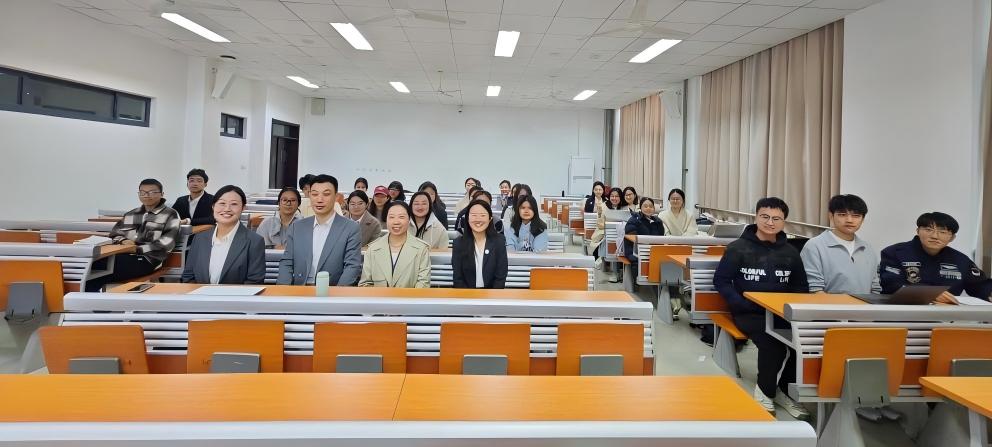 (圖為法本法碩和學碩班課堂后部分師生合影,首排左三為丁瑤老師)