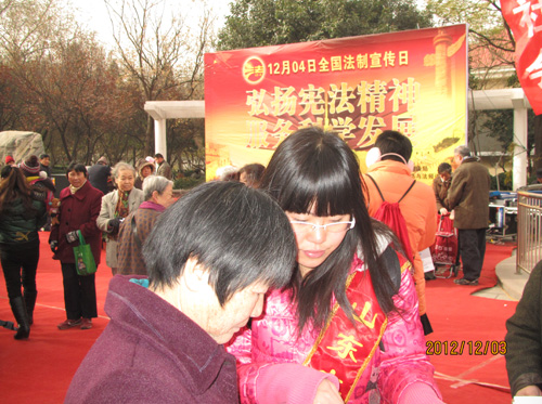 2012123日星期一,普法宣傳日的前一天,由濟南市歷下區(qū)司法局、濟南市電視臺生活與法主辦的12.4普法宣傳在燕子山普法主題公園如火如荼地展開。本次活動的主題為弘揚憲法精神,服務(wù)科學(xué)發(fā)展。法學(xué)社一行人于九時左右到達活動地點,開展普法宣傳活動。