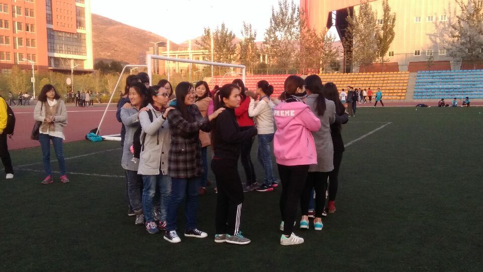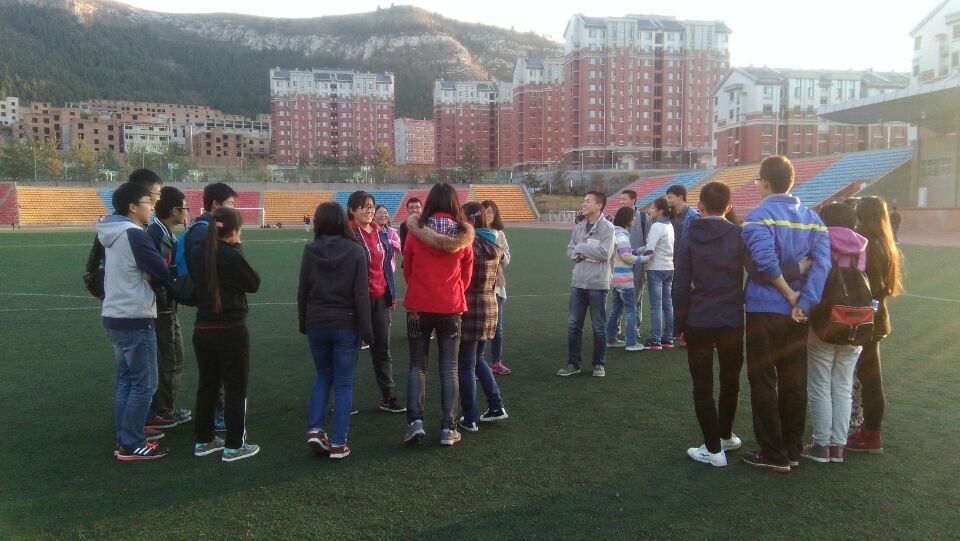 本次活動分三個階段:相互認識,增進友誼,深層了解。為促進大家相互認識并記住彼此名字,宋義正帶領(lǐng)同學(xué)們以分組形式開展了“兩兩認識”及“開火車”游戲,推進同學(xué)之間的交流,四個小組之間的比賽增強了游戲的趣味性,提高了同學(xué)們的集體榮譽感與競爭意識。在接下來的“刮大風(fēng)”游戲中,歡聲笑語彌漫整個操場,更有全體同學(xué)為兩名壽星唱生日歌,和諧氣氛溫暖了秋的涼意。為促進男女同學(xué)間的交流,宋義正組織“愛的抱抱”游戲,要求每個小團體至少一名男生,組成兄弟姐妹般的小集體,消除了彼此的距離感和陌生感。最后一個活動為搭肩游戲,說出你的悄悄話,每個人說出自己與搭肩之人的結(jié)識經(jīng)歷,進一步增進彼此間的了解,加深了友誼。