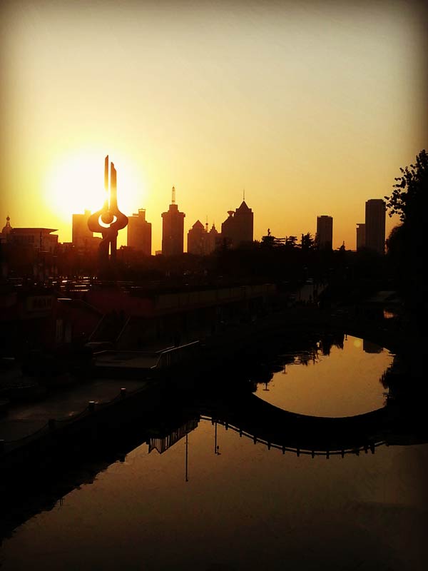 金色泉城:黃昏的泉城廣場沐浴在一片金色的夕陽中,美就在我們隨手一拍。——李潤,2013級。