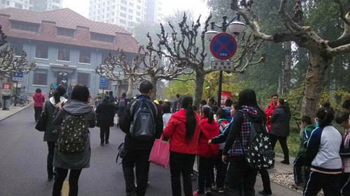上午九點,甸柳小學(xué)的同學(xué)們在家長的陪同下來到山東大學(xué)洪家樓校區(qū),并在志愿者的引導(dǎo)下,來到法新樓前合影。在路上,志愿者們熱情地為各位同學(xué)及家長介紹山大文化。