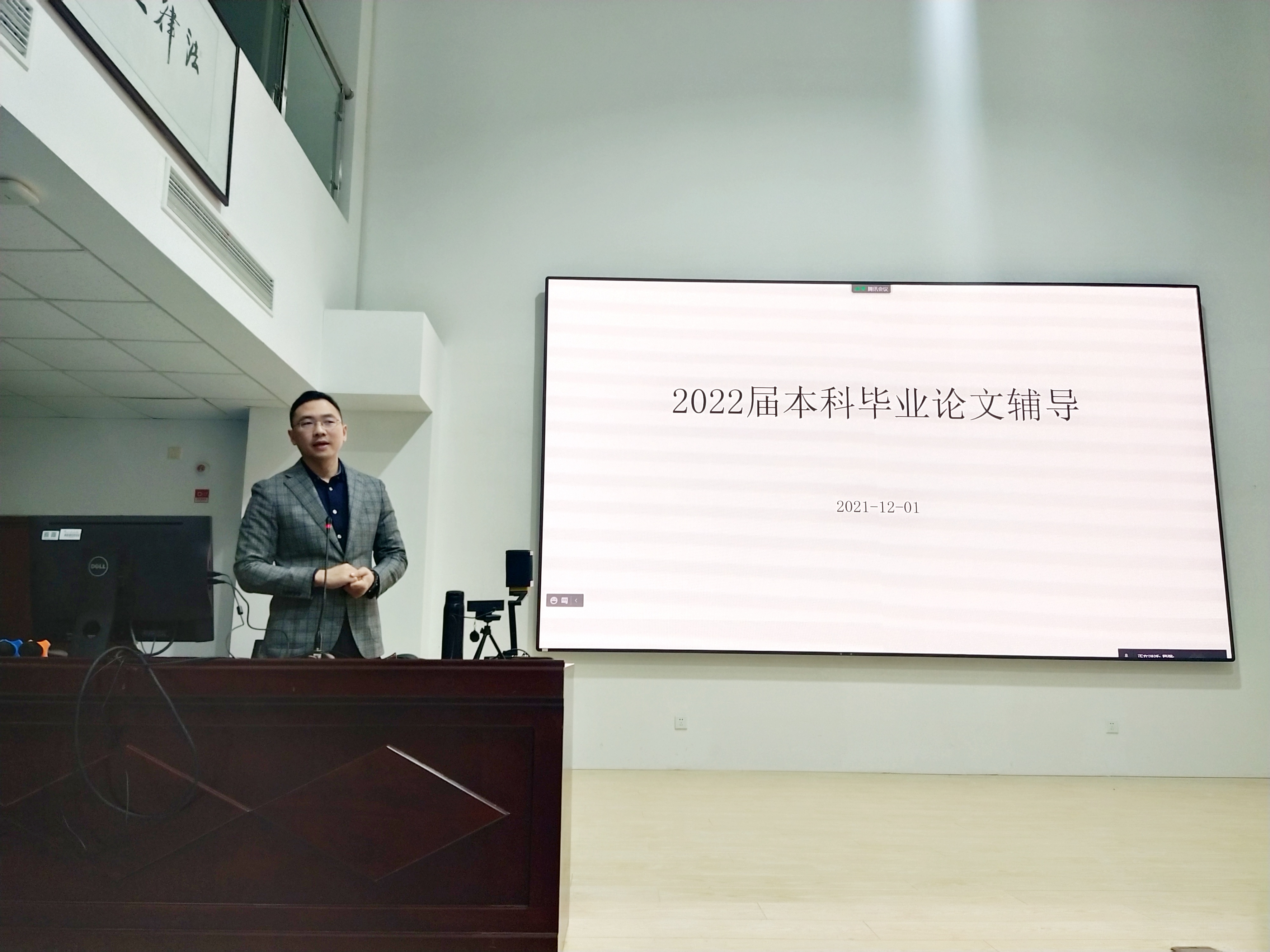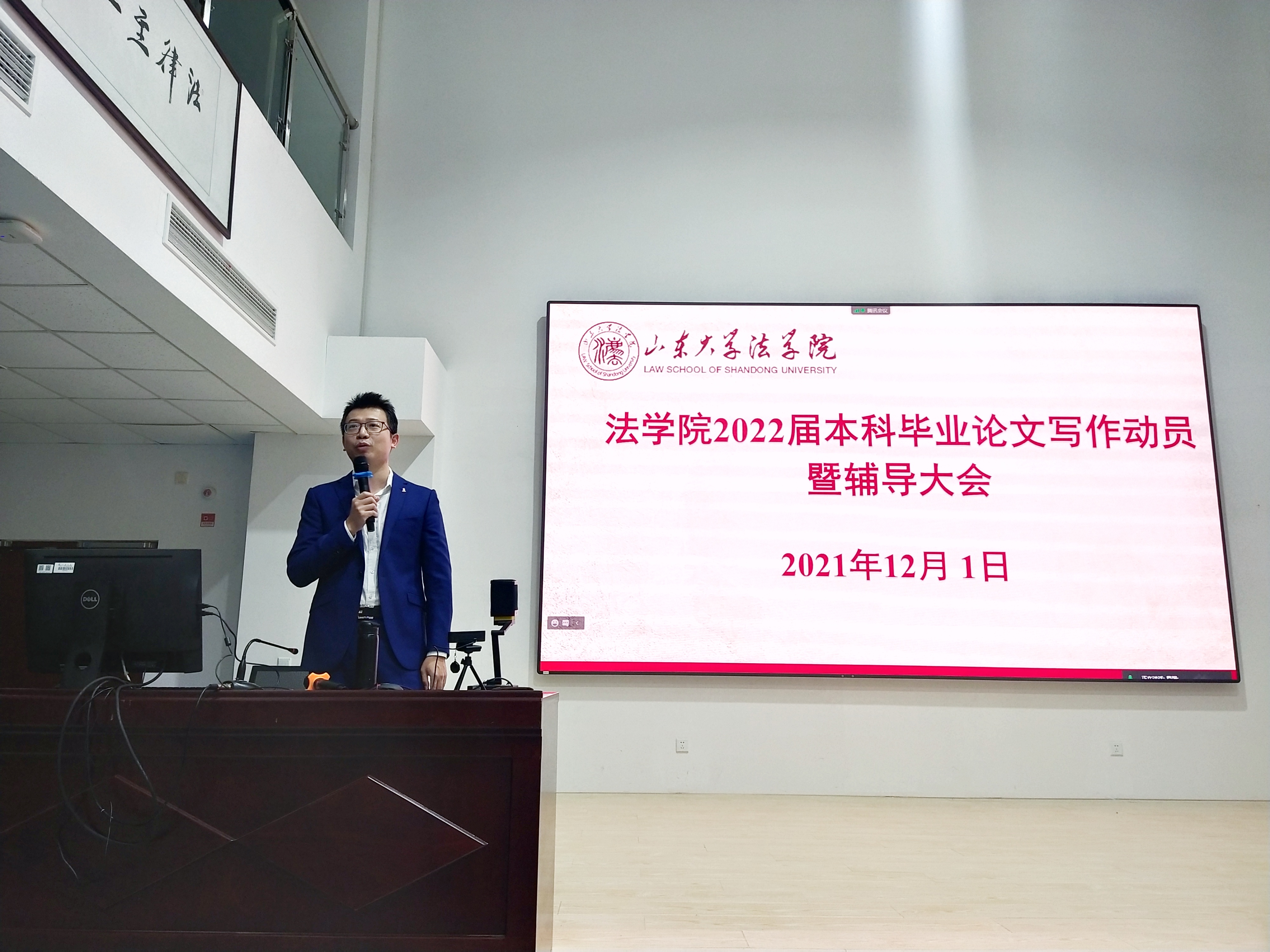 為貫徹落實山東大學2022屆本科畢業(yè)論文(設計)工作,提高學生的論文寫作水平和寫作質量,12月1日,法學院在華崗苑舉行2022屆本科畢業(yè)論文寫作動員暨輔導大會。法學院院長助理于永寧副教授作動員講話、向力副教授進行寫作輔導報告、本科教務辦公室范毅強老師對論文寫作各階段的任務及具體時間節(jié)點進行說明,法學2018級畢業(yè)班學生在線下、法學英語雙學位班2017級畢業(yè)班學生在線上參加輔導大會。