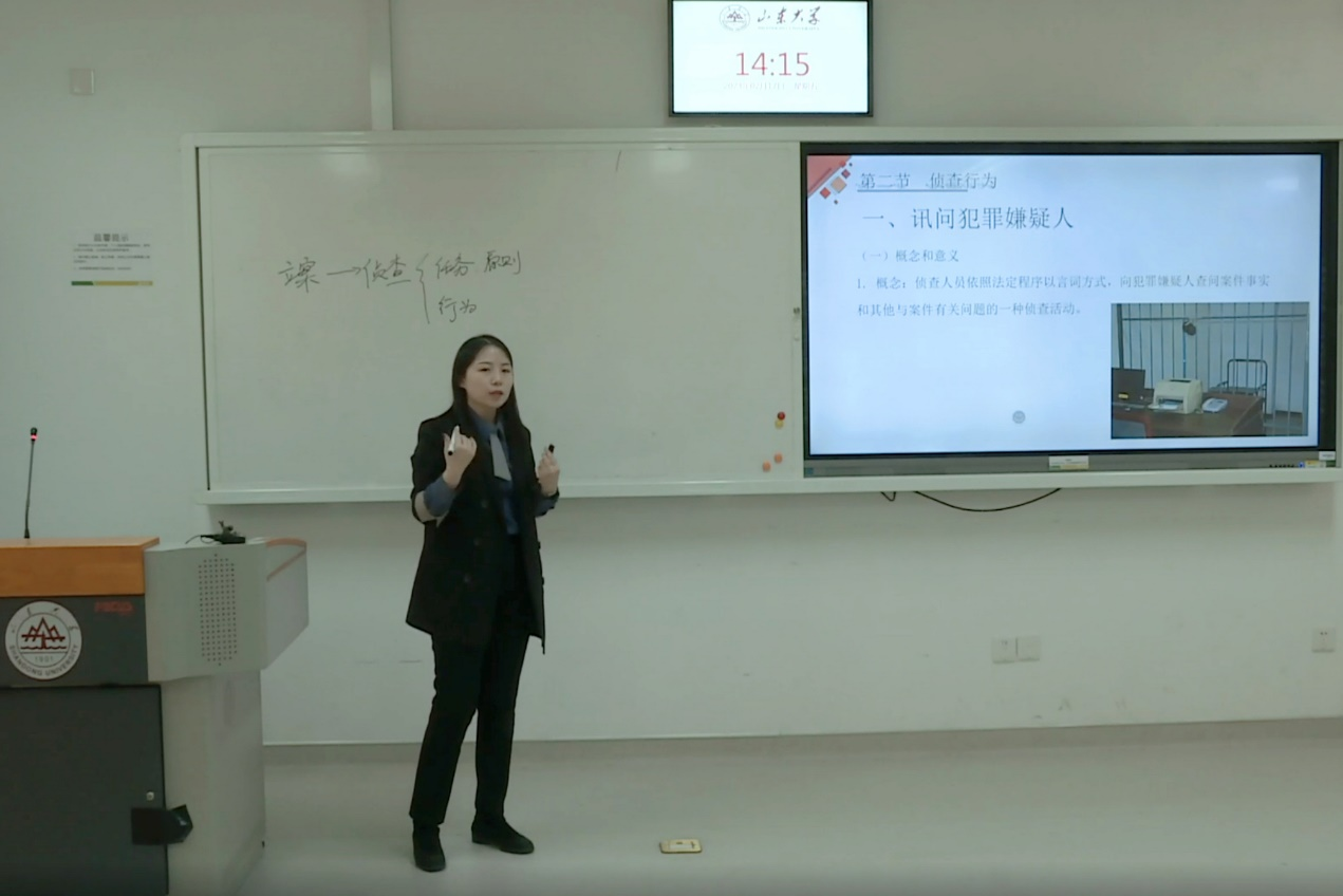 段君尚在決賽中抽到了“偵查行為”教學(xué)節(jié)段,以熱門影視作品中的有關(guān)情節(jié)為切入點,激發(fā)學(xué)生對刑事訴訟法的學(xué)習(xí)興趣,講授了訊問、詢問、勘驗、檢查和特殊偵查措施的程序,并結(jié)合典型案例探討了我國刑事訴訟程序的不斷完善。在教學(xué)反思環(huán)節(jié),段君尚圍繞程序法思維方式、“4F引導(dǎo)法”分析了教學(xué)理念和方法,教學(xué)設(shè)計獲得了評委老師的肯定。