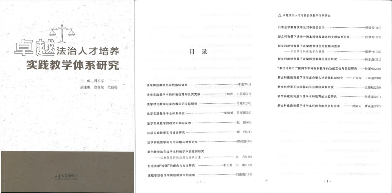 近日,由法學(xué)院、法學(xué)院(威海)院長周長軍教授主編的《卓越法治人才培養(yǎng)實踐教學(xué)體系研究》出版。本書獲得了山東省本科教學(xué)改革研究面上項目和山東大學(xué)教育教學(xué)改革研究重點(diǎn)項目的資助。