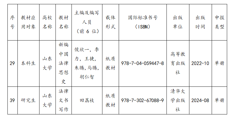 法學(xué)院兩部教材獲評(píng)第三批山東省普通高等教育一流教材