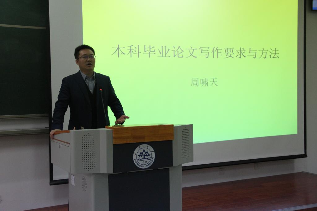 為貫徹落實山東大學2019屆本科畢業(yè)論文(設計)工作,提高學生的論文寫作水平和寫作質量,12月7日,法學院在振聲苑召開了2019屆本科畢業(yè)論文動員暨寫作輔導大會。法學院副院長張海燕教授作了動員講話、周嘯天副教授作了寫作輔導報告。