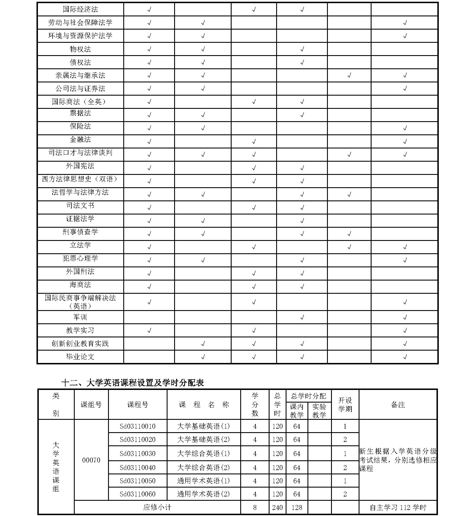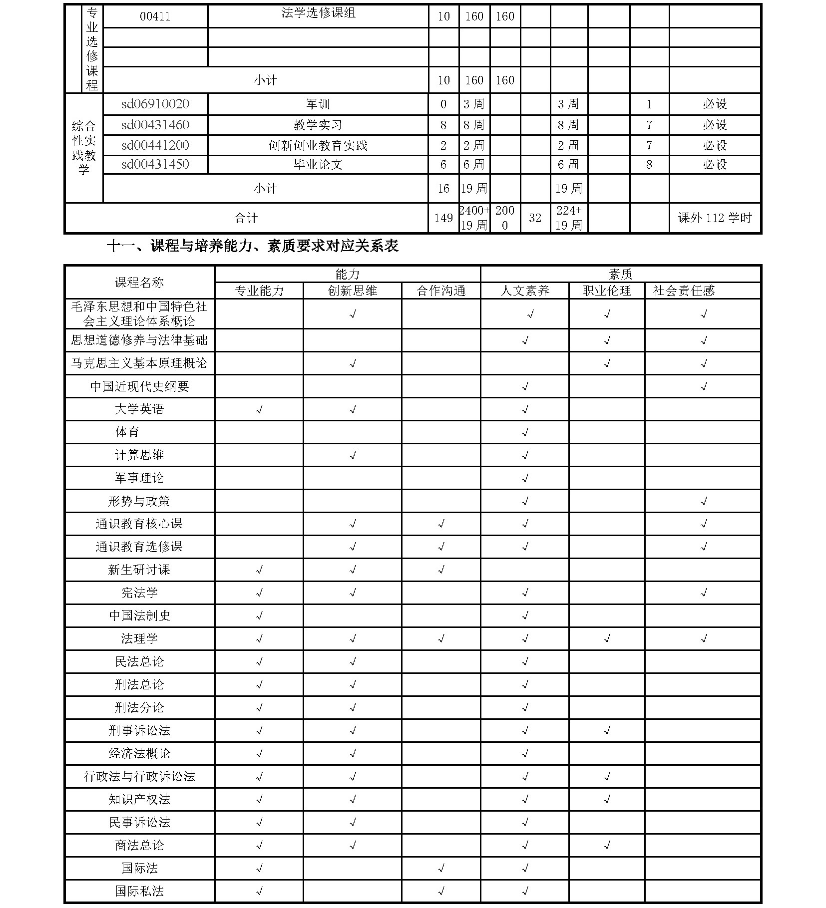 山東大學(xué)法學(xué)(法學(xué)班)專業(yè)培養(yǎng)方案(2017)