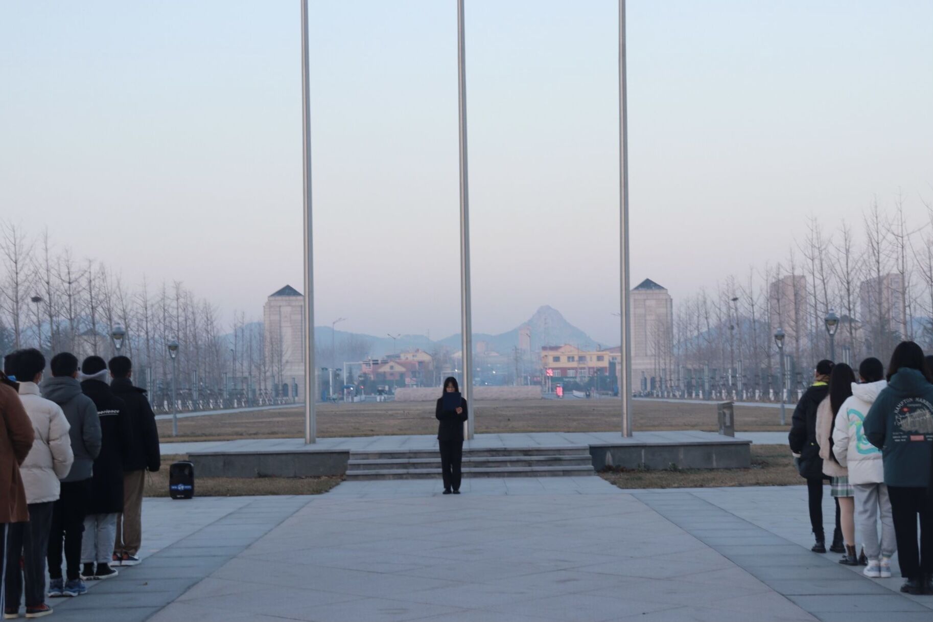 上午七時(shí),升旗儀式正式開始。隨著一聲令下,國(guó)旗護(hù)衛(wèi)隊(duì)隊(duì)員昂首挺胸、精神抖擻,邁著整齊有力的步伐走向升旗臺(tái)。國(guó)歌奏響,升旗手振臂一揮,五星紅旗冉冉升起。全體人員整齊肅立,高唱國(guó)歌,面向鮮紅的五星紅旗行注目禮。在鮮艷的紅旗下,團(tuán)員代表熱比哈·杰恩斯同學(xué)作了主題為“愛國(guó)有我,青年先行”的演講。她用鏗鏘有力的話語向大家講述著青年與國(guó)家不可分離的緊密聯(lián)系,激勵(lì)著大家為中國(guó)的富強(qiáng),中華民族偉大復(fù)興不懈努力、頑強(qiáng)奮斗。團(tuán)支書陳鑫源帶領(lǐng)大家重溫入團(tuán)誓詞。同學(xué)們面向國(guó)旗、緊握右拳、莊嚴(yán)宣誓,慷慨激昂的聲音展現(xiàn)出山大學(xué)子積極向上的精神風(fēng)貌。最后,同學(xué)們齊唱山東大學(xué)校歌,清澈而明亮的歌聲回蕩在山海之間,為此次升旗儀式畫上完美的休止符。