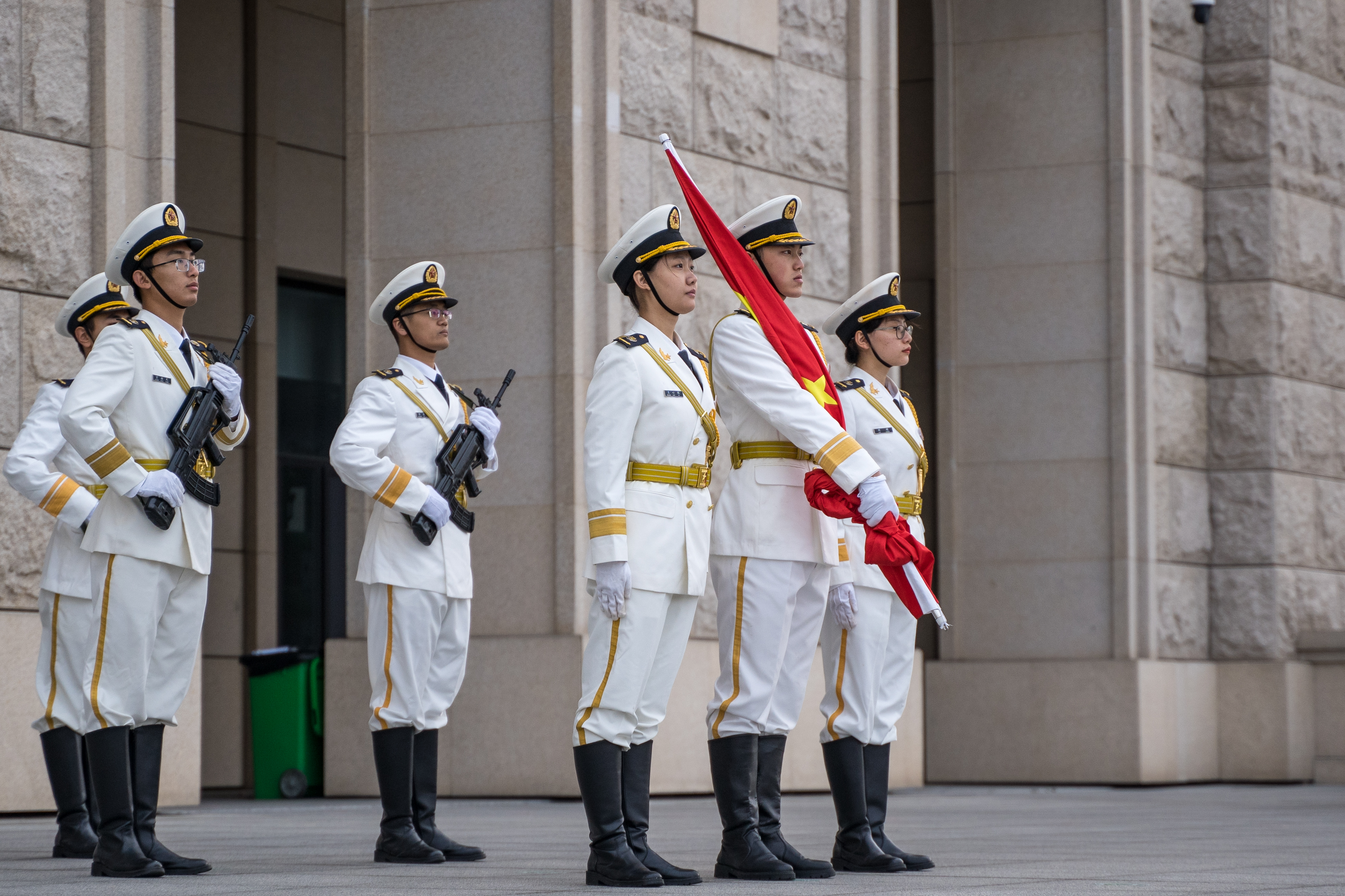 早晨七點,升旗儀式準(zhǔn)時開始。國旗護(hù)衛(wèi)隊踏著鏗鏘的步伐護(hù)送鮮艷的五星紅旗進(jìn)入現(xiàn)場,隨著《義勇軍進(jìn)行曲》的奏響,五星紅旗在同學(xué)們的注視下徐徐升起,翻飛著波浪,承載著希望。