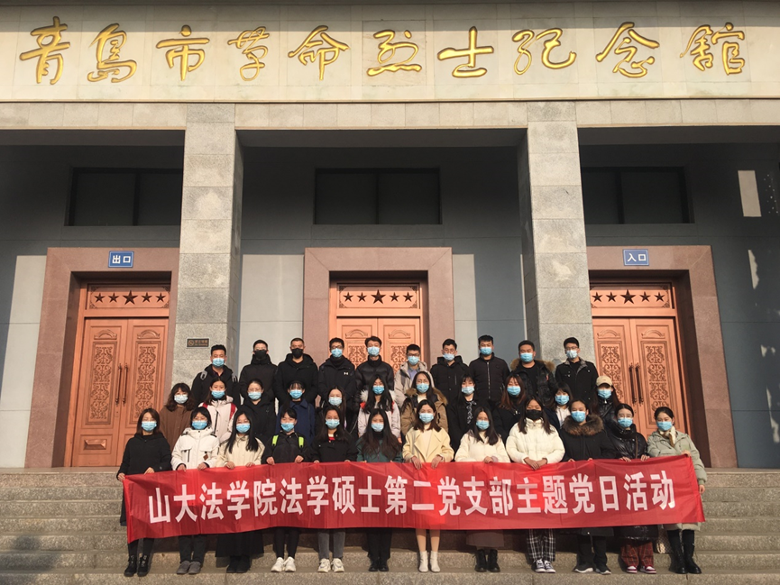 2020年12月10日,法學(xué)院法學(xué)碩士第二黨支部開展“緬懷先烈,牢記初心”主題黨日活動(dòng)。第二黨支部全體黨員通過參觀青島市革命烈士紀(jì)念館,青島德國監(jiān)獄舊址博物館的方式,緬懷革命先烈,牢記初心使命,通過身臨其境地學(xué)習(xí)參觀,進(jìn)行了一次別開生面的主題黨日活動(dòng)。