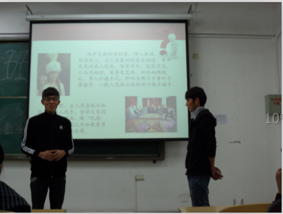 隨后,同學(xué)們表演了四個(gè)關(guān)于社交禮儀方面的小情景劇,積極與觀眾互動,調(diào)動了班會的氣氛。副班長王新雨和學(xué)習(xí)委員胡尚清介紹了少數(shù)民族禮儀,并分別請上了維吾爾、藏、蒙、朝鮮及哈薩克族同學(xué)進(jìn)行講解。