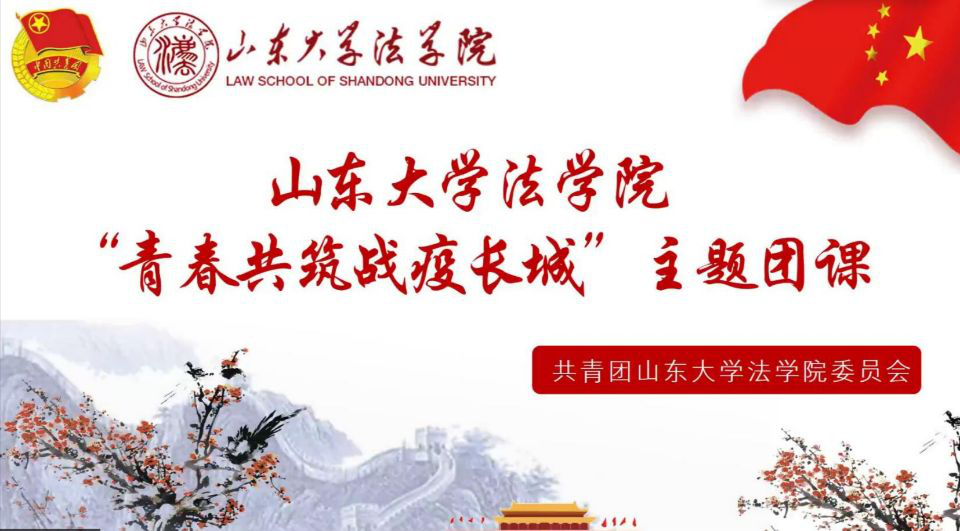 為深入貫徹落實(shí)習(xí)近平總書(shū)記關(guān)于抗擊新冠肺炎疫情的重要指示精神,助力青年學(xué)生充分高質(zhì)量就業(yè),提升居家學(xué)習(xí)實(shí)效,6月3日,法學(xué)院團(tuán)委組織開(kāi)展了“青春共筑戰(zhàn)疫長(zhǎng)城”線(xiàn)上主題團(tuán)課。山東大學(xué)第二醫(yī)院援鄂醫(yī)療隊(duì)成員常超,山東大學(xué)榜樣的力量學(xué)生年度人物、法學(xué)院2018級(jí)碩士研究生李慧,法學(xué)院優(yōu)秀畢業(yè)生王堯志、陳炳蔚和盧菲擔(dān)任主講人,從抗疫故事、創(chuàng)業(yè)、升學(xué)、就業(yè)等方面切入,講述在疫情防控常態(tài)化背景下團(tuán)員青年們不同的職業(yè)發(fā)展選擇。法學(xué)院團(tuán)委副書(shū)記曲儀參加團(tuán)課,院學(xué)生會(huì)主席楊小超擔(dān)任主持。